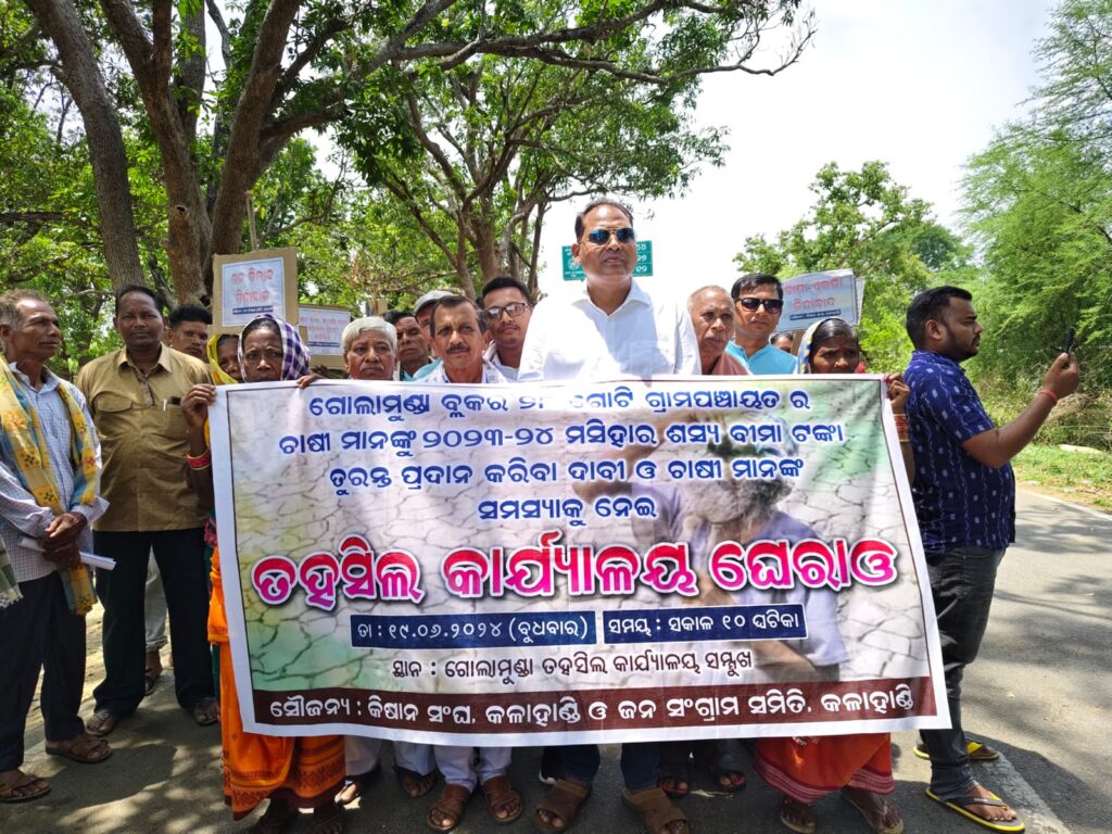 ଗୋଲାମୁଣ୍ଡା ତହସିଲ୍ କାର୍ଯ୍ୟାଳୟ ଘେରାଓ ତାରିଖ ୧୯ ଜୁନ ୨୦୨୪ ବୁଧବାର ଦିନ ଗୋଲାମୁଣ୍ଡା ବ୍ଲକର ୨୮ ଗୋଟି ଗ୍ରାମ ପଞ୍ଚାୟତର ଚାଷୀ ମାନଙ୍କୁ ୨୦୨୩- ୨୦୨୪ ମସିହାର ଶସ୍ୟ ବୀମା ଟଙ୍କା ତୁରନୁ ପ୍ରଦାନ କରିବା ଦାବି ଓ ଚାଷୀମାନଙ୍କ ସମସ୍ୟା କୁ ନେଇ କିଷାନ ସଂଘ କଳାହାଣ୍ଡି ଓ ଜନ ସଂଗ୍ରାମ ସମିତି କଳାହାଣ୍ଡି ଙ୍କ ଦ୍ବାରା ଗୋଲାମୁଣ୍ଡା ବ୍ଲକ ତହସିଲ୍ କାର୍ଯ୍ୟାଳୟ କୁ ଅଞ୍ଚଳର ଶତାଧୂକ ଚାଷୀଙ୍କ ଦ୍ବାରା ଘେରାଓ କରାଯାଇଛି । ପ୍ରଥମେ କିସାନ୍ ସଂଘ କଳାହାଣ୍ଡି ଓ ଜନ ସଂଗ୍ରାମ କଳାହାଣ୍ଡି ର ସଭାପତି ଶ୍ରୀଯୁକ୍ତ ସାଉଲ୍ ମଙ୍ଗରାଜ ଙ୍କ ନେତୃତ୍ୱରେ ଅଞ୍ଚଳର ଶହ ଶହ ଚାଷୀ ଏକତ୍ର ହୋଇ ଏକ ବିଶାଳ ରାଲୀ ଗୋଲାମୁଣ୍ଡା ସ୍ଥିତ ମା ଠାକୁରାଣୀ ମନ୍ଦିର ଠାରୁ ଆରମ୍ଭ ହୋଇ ତହସିଲ୍ ଅଫିସ୍ ସମ୍ମୁଖରେ ଧାରଣା ଦେଇ ଅଫିସ୍ କୁ ଘେରାଓ କରିଥିଲେ। ପରେ ଏକ ୯ ଦଫା ଦାବି ପତ୍ର ଗୋଲାମୁଣ୍ଡା ତହସିଲଦାର ଚନ୍ଦନ ନାଏକ ଙ୍କୁ ପ୍ରଦାନ କରାଯାଇଥିଲା। ଦାବି ପତ୍ର ପ୍ରଦାନ ସମୟରେ ଅଞ୍ଚଳର ଶହ ଶହ ଚାଷୀଙ୍କ ସହ ବିଶିଷ୍ଟ ଚାଷୀ ବୃନ୍ଦ ଯଥା – ସୁମେଶ୍ବର୍ ମୁନି, ଜଗଜିବନ୍ ଅଘରିଆ, ଅନିଲ ମଲ୍ଲିକ, କୁମୁଦ ଗହିର, ଦିବା ବଗର୍ତ୍ତି, ମଧୁ ମାଝୀ, କେଶରୀ ବୋଡକିୟା ଉପସ୍ଥିତ ଥିଲେ।ଯଦି ଚାଷୀଙ୍କର ଏହି ସମସ୍ୟାର ସମାଧାନ ଯଥାଶୀଘ୍ର ନକରାଯାଏ ତେବେ ଆଗାମୀ ଦିନରେ ଭୟଙ୍କର ରୁ ଭୟଙ୍କର ପରିସ୍ଥିତି ସୃଷ୍ଟି ହେବ ବୋଲି ସଂଘର ସଭାପତି ସାଉଲ ମଙ୍ଗରାଜଙ୍କ ପକ୍ଷରୁ କଡାକଡି ଓ ରୋକ୍ ଠୋକ୍ ଚେତାବନୀ ଦିଆ ଯାଇଛି।