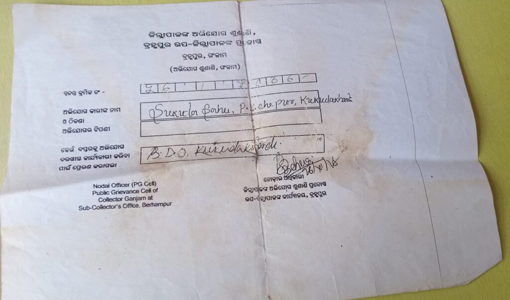 ବାସହିନ ଗରିବ କୁ ସରକାରୀ ଘର ଯୋଗାଇବାରେ କୁକୁଡ଼ାଖଣ୍ଡି ବ୍ଲକ ବିଫଳ କି ?କୁକୁଡାଖଣ୍ଡି – ବାସହିନ ଗରିବ ସୁକୁଟା ସାହୁ କୁକୁଡ଼ାଖଣ୍ଡି ବ୍ଲକ ର ମସିହାଖଲି ପଞ୍ଚାୟତ ର ପ୍ରତାପ କୃଷ୍ଚଚନ୍ଦ୍ରପୁର ଗ୍ରାମ ରେ ବହୁ ବର୍ଷ ହେଲା ରହୁଛନ୍ତି । ସେ ଜଣେ ଦିନ ମଜୁରିଆ । ମଜୁରୀ କରି ଚଳନ୍ତି । ତାଙ୍କୁ 60 ବର୍ଷ ରୁ ଅଧିକ ହେଲାଣି । ସେ ଜଣେ ଗରୀବ ଭୂମିହୀନ ଓ ଗୃହ ହୀନ ବ୍ୟକ୍ତି । ଆଜି ପଯ୍ୟନ୍ତ ଭଡ଼ା ଘରେ ରହି ଆସୁଛି । ବୟସ ଅଧିକ ହେବା ଯୋଗୁଁ ଆଉ ମଜୁରୀ ଖଟି ପାରୁ ନାହିଁ। ସରକାରୀ ଘର ପାଇଁ ବହୁବାର ପଂଚାୟତ ଓ ବ୍ଲକ ରେ ଓ ଜିଲ୍ଲାପାଳ ଙ୍କ ପାଖରେ ମୌଖିକ ଓ ଲିଖିତ ଭାବେ ଆବେଦନ କରିଛି । ଇତି ମଧ୍ୟରେ ତାର ସ୍ତ୍ରୀ ଆରପାରି କୁ ଚାଲି ଗଲାଣି । ସରକାର ଙ୍କ ତରଫ ରୁ ଘର ଖଣ୍ଡେ ମିଳିଲା ନାହିଁ । 2017 ମସିହାରୁ ଖାଲି ମିଳୁଛି ପ୍ରତିଶୃତି ।ଏହି ଗ୍ରାମର ଜଣେ ସୃହୁଦୟ ବ୍ୟକ୍ତି ସେହି ଗ୍ରାମରେ ଥିବା ତାଙ୍କ ଗାଈ ରହିବା ଗୁହାଳ ଘର ଟି ତାକୁ ରହିବାକୁ 2 ବର୍ଷ ହେଲା ଦେଇଛନ୍ତି।