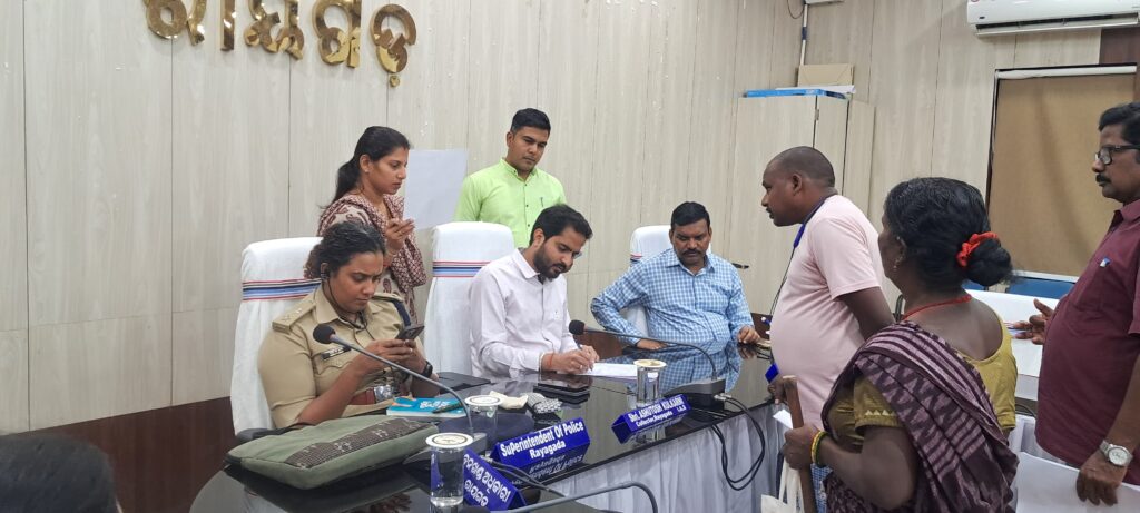 ରାୟଗଡ଼ା-୫/୧-ରାୟଗଡା ଜିଲ୍ଲା ପ୍ରଶାସନ ତରଫରୁ ଜିଲ୍ଲାସଦର ମହକୁମାସ୍ଥିତ ଜିଲ୍ଲା ପରିଷଦ ସଦଭାବନା ସଭାଗୃହଠାରେ ଯୁଗ୍ମ ଅଭିଯୋଗ ଶୁଣାଣୀ ଅନୁଷ୍ଠିତ ହୋଇଯାଇଛି । ରାୟଗଡ଼ା ଜିଲ୍ଲାପାଳ ଶ୍ରୀ ଆଶୁତୋଷ କୁଲକର୍ଣ୍ଣିଙ୍କ ଅଧ୍ୟକ୍ଷତାରେ ଅନୁଷ୍ଠିତ ଶୁଣାଣି ଶିବିରରେ ଆରକ୍ଷୀ ଅଧିକ୍ଷକ ସ୍ୱାତୀ ଏସ କୁମାର, ଜିଲ୍ଲା ମୁଖ୍ୟ ଉନ୍ନୟନ ତଥା ନିର୍ବାହୀ ଅଧିକାରୀ ଶ୍ରୀ ଅକ୍ଷୟ କୁମାର ଖେମୁଣ୍ଡୁ,ଜିଲ୍ଲା ମୁଖ୍ୟ ଚିକିତ୍ସା ତଥା ଜନସ୍ୱାସ୍ଥ୍ୟ ଅଧିକାରୀ ଡାକ୍ତର ଵି ସରୋଜିନୀ ଦେବୀ, ପ୍ରକଳ୍ପ ପ୍ରଶାସକ ଆଇଟିଡ଼ିଏ ଶ୍ରୀ ଚନ୍ଦ୍ରକାନ୍ତ ମାଝୀ ଉପସ୍ଥିତ ରହି ଜନସାଧାରଣଙ୍କ ବିଭିନ୍ନ ଅଭିଯୋଗର ଶୁଣାଣି କରିଥିଲେ । ମୋଟ ୭୦ ଟି ଅଭିଯୋଗ ଜିଲ୍ଲାପାଳଙ୍କ ପାଖକୁ ଆସିଥିଲା। ସେଥି ମଧ୍ୟରୁ ୫୨ଟି ବ୍ୟକ୍ତିଗତ ଅଭିଯୋଗ ଥିଲା ବେଳେ ୧୮ଗୋଟି ଗ୍ରାମ ବାସୀମାନଙ୍କର ସାମୂହିକ ଅଭିଯୋଗ ଥିଲା l