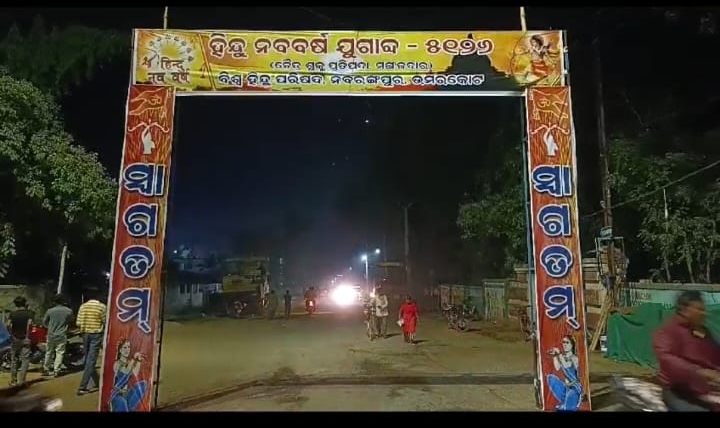 ଯୁଗାବ୍ଦ 5126 ଚୈତ୍ର ଶୁକ୍ଳ ପ୍ରତିପଦା ରେ ସୃଷ୍ଟିକର୍ତ୍ତା ବ୍ରହ୍ମ| ସନାତନ ଧର୍ମ ର ଉତ୍ପତ୍ତି କରିଥିଲେ | ସେହିଦିନ ଠାରୁ ଆଜି ପର୍ଯ୍ୟନ୍ତ ସନାତନ ତଥା ହିନ୍ଦୁ ଧର୍ମାଵଲମ୍ବୀ ଲୋକେ ଚୈତ୍ର ଶୁକ୍ଳ ପ୍ରତିପଦା ଦିନ ହିନ୍ଦୁ ନବ ବର୍ଷ ରୂପେ ପାଳନ କରିଆସୁଥିବା ଦେଖିବାକୁ ମିଳିଛି | ଏହି ପରିପ୍ରେକ୍ଷୀରେ ନବରଙ୍ଗପୁର ଜିଲ୍ଲା ଉମରକୋଟ ସହର ରେ ବିଶ୍ୱ ହିନ୍ଦୁ ପରିଷଦ,ବଜରଙ୍ଗ ଦଳ, ଆର ଏସ ଏସ, ଦୁର୍ଗାବାହିନୀ ତରଫରୁ ଜଗନ୍ନାଥ ମନ୍ଦିର ରୁ ଏକ ବିଶାଳ ଶୋଭାଯାତ୍ରା ବାହାରି ଡିଏନକେ ସ୍ଥିତ ଖେଳ ପଡିଆ ଠାରେ ଏକ ସଭା ର ଆୟୋଜନ କରାଯାଇଥିଲା!ଉକ୍ତ ଶୋଭାଯାତ୍ରା ରେ ହଜାର ହଜାର ଲୋକଙ୍କ ସମାବେଶ ଦେଖିବାକୁ ମିଳିଥିଲା |
