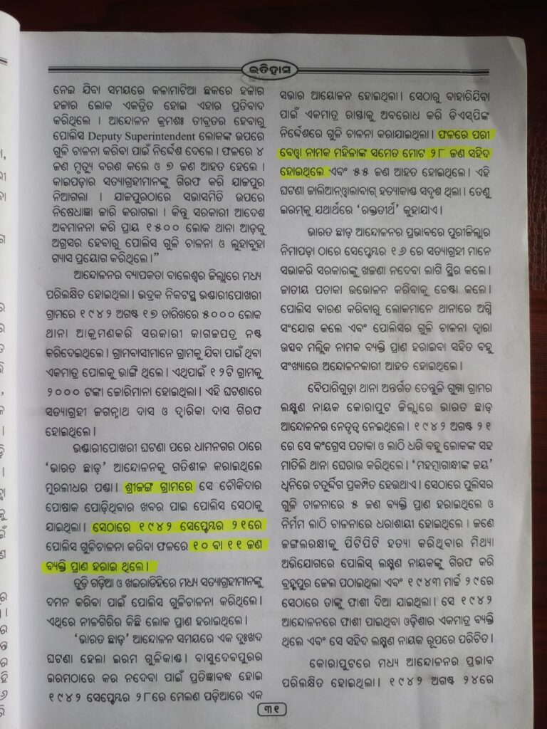 ଭଦ୍ରକ, ତା ୨୭/୧୨( ) – ୨୦୧୩ ମସିହାରେ ଓଡିଶା ଗଣଶିକ୍ଷା ବିଭାଗ ଅଧିନରେ ଥିବା ଓଡିଶା ମାଧ୍ୟମିକ ଶିକ୍ଷା ପରିଷଦ ଦ୍ୱାରା ମୁଦ୍ରିତ ଓ ପ୍ରକାଶିତ ଦଶମ ଶ୍ରେଣୀ ଇତିହାସ ଓ ରାଜନୀତି ବିଜ୍ଞାନ ବହିର ପୃଷ୍ଠା ସଂଖ୍ୟା- ୩୧ ର ପାରା- ୩ ଓ ପାରା-୫ ରେ ଭାରତଛାଡ ଆନ୍ଦୋଳନ ପରିପ୍ରେକ୍ଷୀରେ ଅବିଭକ୍ତ ବାଲେଶ୍ବର ଜିଲ୍ଲା ଓ ତଥା ବର୍ତ୍ତମାନ ର ଭଦ୍ରକ ଜିଲ୍ଲାର ସହୀଦନଗର ଓ ଇରମରେ ସହୀଦ ହୋଇଥିବା ସହୀଦ ମାନଙ୍କ ସଂଖ୍ୟା, ଗୁଳିକାଣ୍ଡ ର ସ୍ଥାନ ଓ ତାରିଖ ସଂପର୍କରେ ସଂପୂର୍ଣ୍ଣ ଭୁଲ୍ ଲେଖାହୋଇଥିବାରୁ ଭାରତର ଛାତ୍ର ଫେଡେରେସନ( ଏସ୍ଏଫ୍ଆଇ) ର ପୂର୍ବତନ ରାଜ୍ୟ ସଭାପତି ତଥା ସିପିଆଇ(ଏମ) ଭଦ୍ରକ ଜିଲ୍ଲା କମିଟି ସଭ୍ୟ ବିକାଶ ନାଥ ତୀବ୍ର ନିନ୍ଦା କରିଛନ୍ତି ଓ ଏହି ଭୁଲ ତଥ୍ୟକୁ ଖୁବ୍ ଶୀଘ୍ର ପରିବର୍ତ୍ତନ କରି ସଠିକ୍ ତଥ୍ୟ ପ୍ରକାଶିତ କରିବାକୁ ଓଡିଶା ମାଧ୍ୟମିକ ଶିକ୍ଷା ପରିଷଦ ଓ ରାଜ୍ୟ ଗଣଶିକ୍ଷା ବିଭାଗକୁ ଗଣମାଧ୍ୟମ ଜରିଆରେ ନିବେଦନ କରିଛନ୍ତି ।