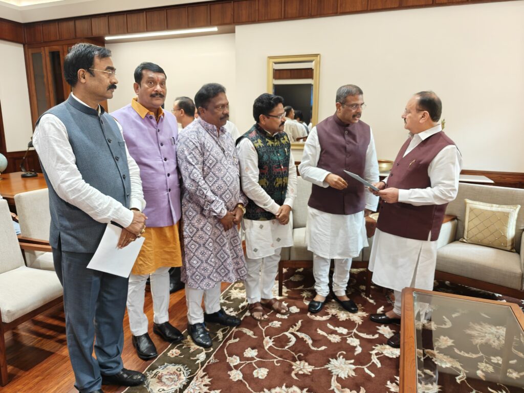 ଭୁବନେଶ୍ଵର , ୦୫ /୦୮/୨୦୨୫ ଆଜି ମାନ୍ୟବର କେନ୍ଦ୍ର ଶିକ୍ଷା ମନ୍ତ୍ରୀ ଶ୍ରୀ ଧର୍ମେନ୍ଦ୍ର ପ୍ରଧାନଙ୍କ ତତ୍ଵାବଧାନରେ ମାନ୍ୟବର ସ୍ୱାସ୍ଥ୍ୟ ଓ ପରିବାର କଲ୍ୟାଣ ମନ୍ତ୍ରୀ, ଓଡିଶା ସରକାର ଡ଼ ମୁକେଶ ମହାଲିଙ୍ଗ ତାଳଚେରର ପବିତ୍ର ମୋହନ ପ୍ରଧାନ ମେଡିକାଲ କଲେଜ ଏବଂ ଫୁଲବାଣୀ ର ସରକାରୀ ମେଡିକାଲ କଲେଜର ୨୦୨୫-୨୬ ଶିକ୍ଷାବର୍ଷ ପାଇଁ ସମୁଦାୟ ୨୦୦ ଏମବିବିଏସ ସିଟରେ ନାମ ଲେଖା ପାଇଁ ମାନ୍ୟବର କେନ୍ଦ୍ର ସ୍ୱାସ୍ଥ୍ୟ ଓ ପରିବାର କଲ୍ୟାଣ ମନ୍ତ୍ରୀ ଶ୍ରୀ ଜଗତ ପ୍ରକାଶ ନଡ୍ଡାଙ୍କୁ ଭେଟି ଅନୁମତି ପତ୍ର (LoP) ଅନୁରୋଧ କରିବା ସହ ରାଜ୍ୟରେ ସ୍ୱାସ୍ଥ୍ୟ ସେବା କୁ ଉନ୍ନତତର କରିବା ପାଇଁ ପୁଙ୍ଖାନୁପୁଙ୍ଖ ଆଲୋଚନା କରିଛନ୍ତି । ୨୦୨୫-୨୬ ଶିକ୍ଷାବର୍ଷରେ ଉଭୟ କଲେଜରେ ୧୦୦ ଜଣ ଲେଖାଏଁ MBBS ଛାତ୍ରଛାତ୍ରୀଙ୍କ ଭର୍ତ୍ତି ପାଇଁ ଅନୁମତି ପତ୍ର (LoP) କେନ୍ଦ୍ର ସ୍ୱାସ୍ଥ୍ୟ ମନ୍ତ୍ରୀ ତ୍ୱରିତ ହସ୍ତକ୍ଷେପ ପାଇଁ ଅନୁରୋଧ କରିଛନ୍ତି । ସୂଚନା ଅନୁସାରେ , ଉପରୋକ୍ତ ଦୁଇଟି ମହାବିଦ୍ୟାଳୟ ଓଡ଼ିଶାରେ ଚିକିତ୍ସା କ୍ଷେତ୍ରରେ ନୂଆଭାବେ ପ୍ରତିଷ୍ଠିତ ହୋଇଛି । ଏହି ଦୁଇ ଅନୁଷ୍ଠାନର ଡିନ ଓ ପ୍ରିନ୍ସିପାଲ ମାନେ ନିଜ ଅନୁମତି ପତ୍ର ପାଇଁ ଆବେଦନ ୧୮ ଜାନୁଆରୀ, ୨୦୨୫ ରେ ନ୍ୟାସନାଲ ମେଡିକାଲ କମିଶନ (NMC) ର ପୋର୍ଟାଲ ମାଧ୍ୟମରେ ଦାଖଲ କରିଥିଲେ।