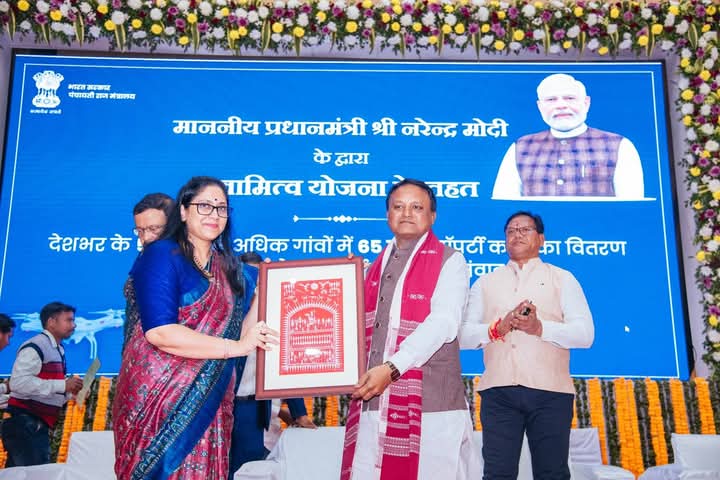 ପରିବାରର ମହିଳାମାନଙ୍କ ନାମ ସମ୍ପତ୍ତି ପତ୍ରରେ ଯୋଡାଯିବା ମହିଳା ସଶକ୍ତିକରଣ ଦିଗରେ ଏହା ଆଉ ଏକ ମାଇଲଖୁଣ୍ଟ”-ମୁଖ୍ୟମନ୍ତ୍ରୀ ରାୟଗଡ:-(ସ୍ବପ୍ର)୧୮/୦୧-ଭାରତର ପ୍ରଧାନମନ୍ତ୍ରୀ ଶ୍ରୀଯୁକ୍ତ ନରେନ୍ଦ୍ର ମୋଦିଙ୍କ ଆଜି ଭିଡିଓ କନଫରେନସିଂ ଜରିଆରେ ସ୍ୱତନ୍ତ୍ର ସ୍ୱାମୀତ୍ୱ ଯୋଜନାର ଇ-ସମ୍ପତି କାର୍ଡ ବିତ୍ତରଣ ଶୁଭାରମ୍ଭ କରିଛନ୍ତି l ଏହି ଯୋଜନାରେ ଭାରତର ୫୦ହଜାର ଗ୍ରାମରୁ ୬୫ଲକ୍ଷ ହିତାଧିକାରୀଙ୍କୁ ଏ ସମ୍ପତି କାର୍ଡ ପାଇବେ l ରାୟଗଡ ଜିଲ୍ଲାରେ ସ୍ୱାମୀତ୍ୱ ଯୋଜନା କାର୍ଯ୍ୟକ୍ରମରେ ମାନ୍ୟବର ମୁଖ୍ୟମନ୍ତ୍ରୀ ଶ୍ରୀଯୁକ୍ତ ମୋହନ ଚରଣ ମାଝୀ ମୁଖ୍ୟ ଅତିଥି ଭାବରେ ଉପସ୍ଥିତ ରହି ରାଜସ୍ୱ ଓ ବିପର୍ଯ୍ୟୟ ପରିଚାଳନା ମନ୍ତ୍ରୀ,ଓଡିଶା ଶ୍ରୀଯୁକ୍ତ ସୁରେଶ ପୂଝIରୀ, ରIୟଗଡ଼ ବିଧାୟକ ଶ୍ରୀ କାଡ୍ରIକl ଆପଲସ୍ୱାମୀ, ଵିଷମ କଟକ ବିଧାୟକ ଶ୍ରୀଯୁକ୍ତ ନୀଳମାଧଵ ହିକକା ଓ ଜିଲ୍ଲାପାଳ ରIୟଗଡ଼ ଶ୍ରୀମତୀ ପାରୁଲ ପଟାୱରୀଙ୍କ ଉପସ୍ଥିତିରେ ହିତାଧିକାରୀ ମାନଙ୍କୁ ଇ-ସମ୍ପତି କାର୍ଡ ପ୍ରଦାନ କରିଛନ୍ତି l