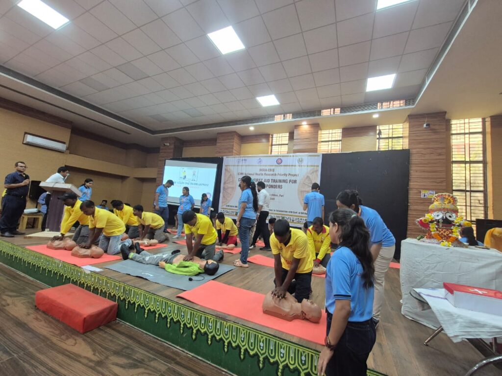 ପୁରୀ ୬/୬ ଆଗାମୀ ରଥଯାତ୍ରା ନିମିତ୍ତ ଆଇସିଏମଆର ଇଣ୍ଡିଆ ଇଏମ ଏସ ପ୍ରକଳ୍ପ ଏବଂ ଏନ ଏସ ଏସ ବ୍ୟୁରୋ (ଏମ୍ସ ଭୁବନେଶ୍ୱର) ଏକ ହୃଦ-ଫୁସଫୁସିୟ ପୁନର୍ଜୀବନର ପ୍ରଣାଳୀ (ସିପିଆର ) ଏବଂ ପ୍ରାଥମିକ ଚିକିତ୍ସା ତାଲିମ ଆୟୋଜନ କରିଛନ୍ତି। ଜିଲ୍ଲା ପ୍ରଶାସନ, ପୁରୀ ସହିତ ମିଳିତ ସହଯୋଗରେ ଏକ ଦିନିକିଆ ସିପିଆର ଏବଂ ପ୍ରାଥମିକ ଚିକିତ୍ସା ତାଲିମ କାର୍ଯ୍ୟକ୍ରମ ସଫଳତାର ସହ ଅନୁଷ୍ଠିତ ହୋଇଥିଲା। ICMR-ଇଣ୍ଡିଆ ଇଏମଏସ୍ ପ୍ରୋଜେକ୍ଟ ହେଉଛି ପୁରୀ ଜିଲ୍ଲାରେ ଉଚ୍ଚମାନର ଜରୁରୀକାଳୀନ ଚିକିତ୍ସା ବ୍ୟବସ୍ଥାର ମଡେଲ୍ ବିକଶିତ କରିବା ପାଇଁ ଏକ ପ୍ରକଳ୍ପ ଯାହା ICMR ଦ୍ୱାରା କମିଶନ କରାଯାଇଛି ଏବଂ ରାଜ୍ୟ ସରକାରଙ୍କ ସହିତ ମିଳିତ ସହଯୋଗରେ ଏମ୍ସ ଭୁବନେଶ୍ୱର ଦ୍ୱାରା କାର୍ଯ୍ୟକାରୀ କରାଯାଇଛି।