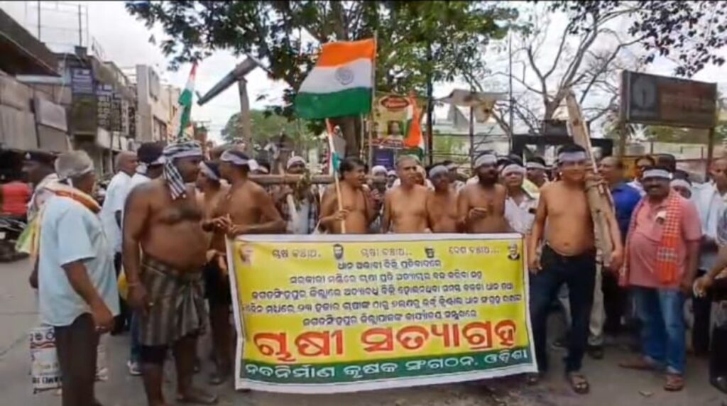 ଜଗତସିଂହପୁର ଜିଲ୍ଲାରେ ନବ ନିର୍ମାଣ କୃଷକ ସଙ୍ଗଠନ ପକ୍ଷରୁ ଜିଲ୍ଲାପାଳଙ୍କ କାର୍ଯ୍ୟାଳୟ ସମ୍ମୁଖରେ ଅଭିନବ ଉପାୟରେ ଅର୍ଦ୍ଧ ଉଲଗ୍ନ ହୋଇ ପ୍ରତିବାଦ