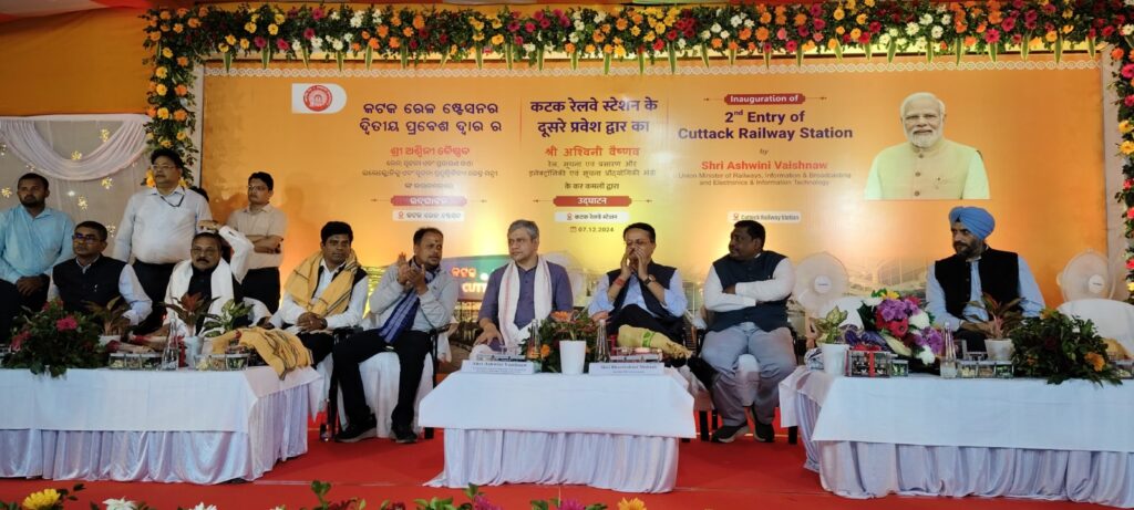 ରେଳମନ୍ତ୍ରୀ ଶ୍ରୀ ଅଶ୍ୱିନୀ ବୈଷ୍ଣବ କଟକ ରେଳ ଷ୍ଟେସନର ୨ୟ ପ୍ରବେଶ ଦ୍ୱାରକୁ ଉଦ୍ଘାଟନ କରି ଯାତ୍ରୀଙ୍କ ସୁବିଧା ବୃଦ୍ଧି କରିଛନ୍ତି |ଭୁବନେଶ୍ୱର, ଡିସେମ୍ବର 7, 2024 _ରେଳବାଇ, ସୂଚନା ଓ ପ୍ରସାରଣ ଏବଂ ଇଲେକ୍ଟ୍ରୋନିକ୍ସ ଓ ସୂଚନା ପ୍ରଯୁକ୍ତିବିଦ୍ୟା ମନ୍ତ୍ରୀ ଶ୍ରୀ ଅଶ୍ୱିନୀ ବୈଷ୍ଣବ ଆଜି ସନ୍ଧ୍ୟାରେ କଟକ ରେଳ ଷ୍ଟେସନର ୨ୟ ପ୍ରବେଶ ଦ୍ୱାରକୁ ଉଦ୍ଘାଟନ କରି ଅମୃତ ଷ୍ଟେସନ୍ ଯୋଜନା ଅନ୍ତର୍ଗତ ଷ୍ଟେସନର ପୁନର୍ବିକାଶରେ ଏକ ଗୁରୁତ୍ୱପୂର୍ଣ୍ଣ ମାଇଲଖୁଣ୍ଟକୁ ଚିହ୍ନିତ କରିଛନ୍ତି | ପୂର୍ବପାର୍ଶ୍ଵ ଷ୍ଟେସନ ଭବନ ସହିତ ଏହି ନୂତନ ପ୍ରବେଶ, ଯାତ୍ରୀ ମାନଙ୍କ ଯାତାୟାତରେ ଉନ୍ନତ କରିବାକୁ, ଆଧୁନିକ ସୁବିଧା, ନିରାପତ୍ତା ଏବଂ ପରିଷେବା ପ୍ରଦାନ କରିବାକୁ ସ୍ଥିର ହୋଇଛି |୨ୟ ପ୍ରବେଶ ଦ୍ୱାର ଜାତୀୟ ରାଜପଥ ପାର୍ଶ୍ୱରୁ ଆସୁଥିବା ଯାତ୍ରୀମାନଙ୍କ ପାଇଁ ନିରନ୍ତର ଗତି ଯୋଗାଇବା ପାଇଁ ଡିଜାଇନ୍ କରାଯାଇଛି, ଯାହା ଷ୍ଟେସନକୁ ଯାତାୟାତ ପାଇଁ ଅଧିକ ସୁଗମ କରିଥାଏ ଏବଂ ସହଜ ପ୍ରବେଶ ସୁନିଶ୍ଚିତ କରିଥାଏ |