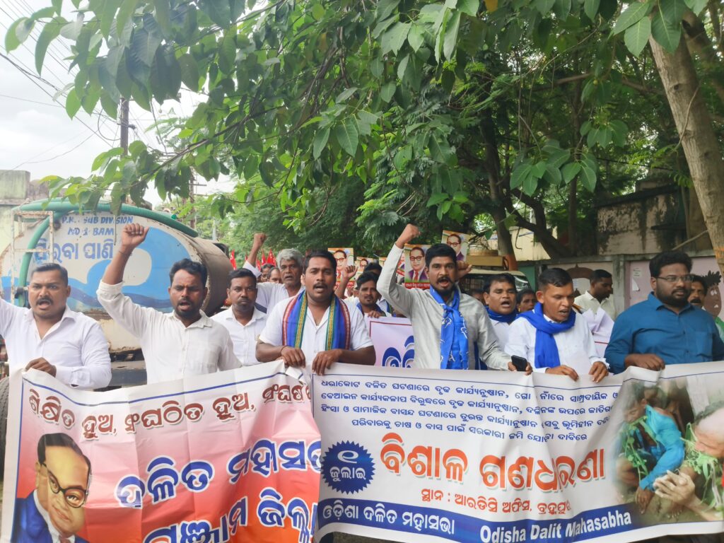 ବ୍ରହ୍ମପୁର – ଗତ 22ଜୁନ ଦିନ ଧରାକୋଟ ବ୍ଲକ ର ଖାରିଗୁମା ଓ ପରେ ଜାହାଡା ଠାରେ ଦଳିତ ନିର୍ଯାତନା ଘଟଣାର ପ୍ରତିବାଦରେ ଆଜି ସ୍ଥାନୀୟ ଆରଡିସି ଅଫିସ୍ ସମ୍ମୁଖରେ ଅନୁଷ୍ଠିତ ଗଣଧାରଣାରେ ଓଡ଼ିଶା ଦଳିତ ମହାସଭାର ଆବାହକ ସଂଗ୍ରାମ ନାୟକ ସଭାପତିତ୍ବ କରିଥିଲେ । ଅନ୍ୟମାନଙ୍କ ମଧ୍ୟରେ ମୂଳନିବାସୀ ସମତା ପରିଷଦର‌ ଅଭିରାମ ମଲ୍ଲିକ, ସିପିଆଇ ଏମ-ଏଲ ନିଉ ଡେମୋକ୍ରାସୀର ମୁଖପାତ୍ର ଭାଲଚନ୍ଦ୍ର ଷଡ଼ଙ୍ଗୀ, ଆମ୍ବେଦକର ଲୋହିଆ ବିଚାର ମଞ୍ଚର ଆବାହକ ସଂଗ୍ରାମ ମଲ୍ଲିକ, ସିପିଏମ ଜିଲ୍ଲା ସମ୍ପାଦକ ଯୁଦ୍ଧିଷ୍ଠିର ବେହେରା, ସିପିଆଇ ଜିଲ୍ଲା ସଂପାଦକ ପ୍ରକାଶ ପାତ୍ର, ଅଲ୍ ଓଡ଼ିଶା ଏସସି ଫେଡେରେସନ ସଭାପତି ଧନଞ୍ଜୟ ଦୀପ, ବିଜୟ ସେଠୀ, ଆମ୍ବେଦକର ଫାଉଣ୍ଡେସନର ପ୍ରଦ୍ୟୁମ୍ନ ନାୟକ, ଅନୁଗୋଳର ଦଳିତ ନେତା ଚିତ୍ତରଞ୍ଜନ ଗୌତମ, ଦଳିତ ମହିଳା ନେତ୍ରୀ ବନିତା ସାମଲ, ଧର୍ମେନ୍ଦ୍ର ନାୟକ, ପୂର୍ବତନ ବିଧାୟକ ଏନ୍ ନାରାୟଣ ରେଡ୍ଡୀ, ରାଜେନ୍ଦ୍ର କୁମାର ବେହେରା, ଲୋକଶକ୍ତି ଅଭିଯାନର ପ୍ରଫୁଲ୍ଲ ସାମନ୍ତରା, ଲେଖିକା ଡ଼ଃ ବିଧୂପ୍ରଭା ରଥ, ମାନବବାଦୀ ହେତୁବାଦୀ ସଂଗଠନର ସମ୍ପାଦକ କେ ନାନ୍ଦେଶୁ ସେନାପତି, ଆପ୍ ଜିଲ୍ଲା ସମ୍ପାଦକ ଆଦିତ୍ୟ ରଥ, କୃଷକ ନେତା ବୃନ୍ଦାବନ ଖଟେଇ, ଦଳିତ ନେତା ରାଜୁ ପାଣି ପ୍ରମୁଖ ନିଜର ବକ୍ତବ୍ୟ ରଖିଥିଲେ ।