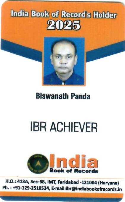 ଇଣ୍ଡିଆ ବୁକ ଓଫ ରେକର୍ଡସ ରେ ସ୍ଥାନ ପାଇଲେ , ପୁରୀ ଜିଲ୍ଲା ସୂଚନା ବିଜ୍ଞାନ ଅଧିକାରୀ