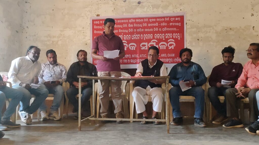 କେନ୍ଦ୍ର ଓ ରାଜ୍ୟ ସରକାରଙ୍କ ଜନବିରୋଧୀ ନୀତି, ଶ୍ରମିକ ଓ କୃଷକ ମାରଣା ନୀତି ବିରୋଧରେ ଆସନ୍ତା ଫେବୃଆରୀ ୧୨ତାରିଖ (ଗୁରୁବାର) ଦିନ ଦେଶବ୍ୟାପୀ ୧୨ ଘଣ୍ଟିଆ ‘ଭାରତ ବନ୍ଦ’ ଡାକରା ଦିଆଯାଇଛି। ଏହି ପରିପ୍ରେକ୍ଷୀରେ ନବରଙ୍ଗପୁର ଜିଲ୍ଲା ଅମଳା ଭବନଠାରେ କେନ୍ଦ୍ରୀୟ ଟ୍ରେଡ୍ ୟୁନିୟନ ମିଳିତ ମଞ୍ଚ ଏବଂ ସ୍ୱାଧୀନ ଫେଡେରେସନ ପକ୍ଷରୁ ଏକ ଗୁରୁତ୍ୱପୂର୍ଣ୍ଣ ସାମ୍ବାଦିକ ସମ୍ମିଳନୀ ଅନୁଷ୍ଠିତ ହୋଇଯାଇଛି।