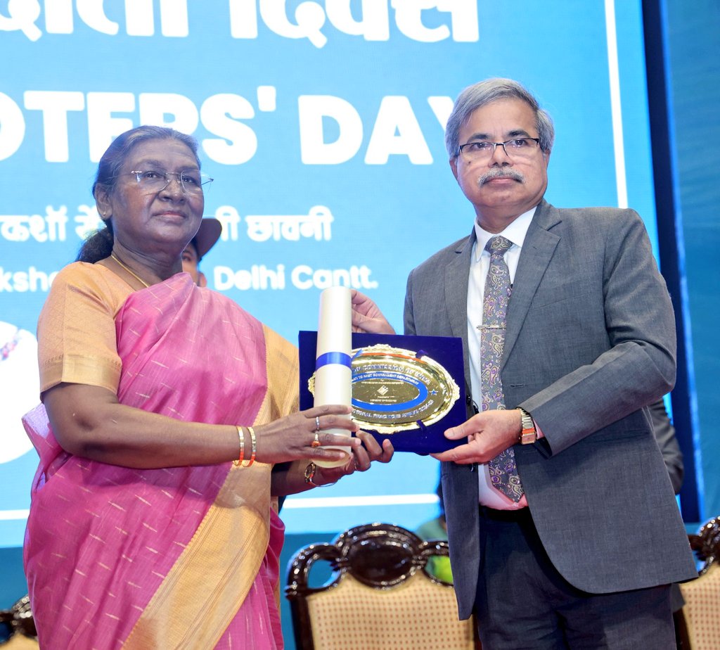 ଶ୍ରେଷ୍ଠ ନିର୍ବାଚନ ଅଭ୍ୟାସ ପୁରସ୍କାର ପାଇଲା ଭାରତୀୟ ରେଳବାଇ lଜାତୀୟ ମତଦାତା ଦିବସ ଅବସରରେ ମହାମହିମ ରାଷ୍ଟ୍ରପତି ଶ୍ରୀମତୀ ଦ୍ରୌପଦୀ ମୁର୍ମୁ ମତଦାତା ସଚେତନତା ଅଭିଯାନରେ ଗୁରୁତ୍ୱପୂର୍ଣ୍ଣ ଭୂମିକା ଗ୍ରହଣ କରିଥିବାରୁ ଭାରତୀୟ ରେଳବାଇକୁ ପୁରସ୍କୃତ କରିଥିଲେ । ଭାରତୀୟ ରେଳବାଇ ତରଫରୁ ରେଳବାଇ ବୋର୍ଡର ଅଧ୍ୟକ୍ଷ ତଥା ସିଇଓ ସତୀଶ କୁମାର ଏହି ପୁରସ୍କାର ଗ୍ରହଣ କରିଛନ୍ତି।
