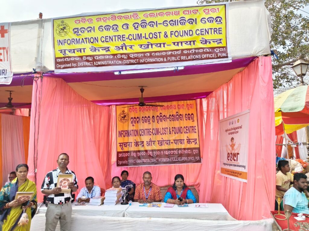 ହଜିଯାଉଛନ୍ତି ତେବେ ହଜିବା ଓ ଖୋଜିବା ଉଭୟ ଲୋକ ସୂଚନା କେନ୍ଦ୍ର କୁ ଆସନ୍ତୁ ଯାହା ଫଳରେ ଶିଘ୍ର ମିଳି ପାରିବେ, ଗହଣା, ମୋବାଇଲ,ମନିପର୍ସ ପ୍ରତି ସତର୍କ ରୁହନ୍ତୁ ଇତ୍ୟାଦି ସୂଚନା ଦିଆଯାଇଥିଲା।ସେହିପରି ସୂଚନା ଓ ଲୋକ ସମ୍ପର୍କ ବିଭାଗ ପକ୍ଷରୁ ପ୍ରକାଶିତ ଉତ୍କଳ ପ୍ରସଙ୍ଗ, ଓଡିଶା ରିଭ୍ୟୁ ବହି ବିକ୍ରୟ କରାଯାଇଥିଲା।