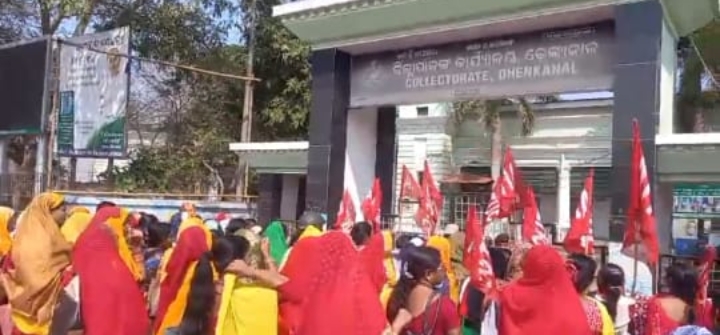 ଢ଼େଙ୍କାନାଳ କେନ୍ଦ୍ରୀୟ ଟ୍ରେଡ୍ ୟୁନିୟନ୍ମାନେ ତଥା ଏଆଇଟିୟୁସିର ଆହ୍ୱାନ କ୍ରମେ କେନ୍ଦ୍ରର ମୋଦି ସରକାରଙ୍କ କୁଶାସନ ଓ ଶ୍ରମିକ ମାରଣ ନୀତି ବିରୁଦ୍ଧରେ ହେଉଥିବା ଦେଶବ୍ୟାପୀ ଧର୍ମଘଟରେ ନିଳ ଓଡିଶା ଅଙ୍ଗନଓ୍ବାଡି କର୍ମୀସଂଘ, ଢେଙ୍କାନାଳ ସଦର ବ୍ଲକ୍ ତରଫରୁ ଦିନିକିଆ ଧର୍ମଘଟରେ ଯୋଗଦେଇ ୮ ଦଫା ଦାବୀ ନେଇ ଜିଲ୍ଲାପାଲଙ୍କ ମାଧ୍ୟମରେ ପ୍ରଧାନମନ୍ତ୍ରୀଙ୍କ ପାଖକୁ ପଠାଇଥିଲେ । ମଧ୍ୟାହ୍ନ ଭୋଜନ ପାଚିକା ସହାୟିକାମାନଙ୍କ ସଂଘ ତରଫରୁ ମଧ୍ୟ ପ୍ରଧାନମନ୍ତ୍ରୀଙ୍କ ଉଦ୍ଦେଶ୍ୟରେ ଦାବିପତ୍ର ଜିଲ୍ଲାପାଳଙ୍କ ଅନୁପସ୍ଥିତିରେ ଅତିରିକ୍ତ ଜିଲ୍ଲାପାଳ ରମେଶ ଚନ୍ଦ୍ର ସେଠୀଙ୍କୁ ପ୍ରଦାନ କରିଥିଲେ । ପ୍ରକାଶଥାଉକି ଚଳିତ ମାସର ଆରମ୍ଭରେ କେନ୍ଦ୍ର ସରକାରଙ୍କର ବଜେଟ୍ ଉପସ୍ଥାପନରେ ଅଙ୍ଗନଓ୍ବାଡି କର୍ମୀ, ଓଡିଶାରେ ପାଚିକାମାନଙ୍କ ପାଇଁ ମାସିକ ଭତା ବୃଦ୍ଧିର କୌଣସି ରୂପରେଖ ନଥୁବାରୁ ବାଧ୍ଯ ହୋଇ ରାଜରାସ୍ତାକୁ ଓହ୍ଲାଇ ବିଭିନ୍ନ ଦାବୀ କରିଛନ୍ତି । ଯଥା -ଅଙ୍ଗନଓ୍ବାଡି କର୍ମୀ ଓ ମଧ୍ୟାହ୍ନ ଭୋଜନ ପାଚିକା, ଆଶାକର୍ମୀ ମାନଙ୍କୁ ଭାରତୀୟ ଶ୍ରମ ସମ୍ମିଳନୀର ସୁପାରିଶ ଭିତରେ ଓ୍ବାର୍କର ମାନ୍ୟତା ପ୍ରଦାନ, ମାସିକ ୨୬ ହଜାର ଟଙ୍କା ଦରମା ପ୍ରଦାନ, ମାସିକ ୧୦ ହଜାର ଟଙ୍କା ପେନ୍ସନ୍ ପ୍ରଦାନ, ଏସ୍ଏନ୍ପିର ଦର ସଂଶାଧନ କରି ବୃଦ୍ଧି କରିବା, ପ୍ରାକ୍ ବିଦ୍ୟାଳୟ ଶିଶୁ ଓ ଶିକ୍ଷା ସଂକୋଚନକାରୀ ଜାତୀୟ ଶିକ୍ଷାନୀତି ୨୦୨୦ ପ୍ରତ୍ୟାହାର କରାଯାଉ ଇତ୍ୟାଦି ଦାବୀ ନେଇ ପ୍ରଧାନମନ୍ତ୍ରୀଙ୍କ ନିକଟକୁ ପଠାଇବା ପାଇଁ ଜିଲ୍ଲାପାଳଙ୍କୁ ପ୍ରଦାନ କରିଛନ୍ତି । ଏଆଇଟିୟୁସିର ସଭାପତି ଜମ୍ବେଶ୍ବର ପୃଷ୍ଟିଙ୍କ ସଭାପତିତ୍ୱରେ ସଭା ପରିଚାଳନା କରାଯାଇଥୁଲା । ଏଥିରେ ଏଆଇଟିୟୁସିର ସମ୍ପାଦକ ନାରାୟଣ ନାୟକ, ନିଷ୍ଫଳ ଓଡିଶା ଅଙ୍ଗନଓ୍ବାଡି କର୍ମୀ ସଂଘର ସାଧାରଣ ସମ୍ପାଦିକା ହରପ୍ରିୟା ସାଇଁ, ବ୍ଲକ୍ ସଭାପତି ସୁଜାତା ନାୟକ, ସମ୍ପାଦିକା ଭାରତୀ ନାଏକ, ପୂର୍ଣିମା ତ୍ରିପାଠୀ, ବିଷ୍ଣୁପ୍ରିୟା ବରାଳ, ସୁନିତା ବେହେରାଙ୍କ ସମେତ ମଧ୍ୟାହ୍ନ ଭୋଜନ ପାଚିକା ସଂଘର ଜିଲ୍ଲା ସଭାପତି ରବି ରଥ, ବ୍ଲକ୍ ସଭାପତି ଶାନ୍ତିପ୍ରିୟା ସାହୁ, ସମ୍ପାଦିକା ଶୁଭାସିନୀ ବେହେରା, ସସ୍ମିତା ରାଉତଙ୍କ ସହିତ ଶତାଧିକ ଅଙ୍ଗନଓ୍ବାଡି କର୍ମୀ ଯୋଗଦେଇ ଗୋପବନ୍ଧୁ ଟାଉନ୍ ହଲ୍ ଠାରୁ ବାହାରି ଏକ ରାଲିରେ ଜିଲ୍ଲାପାଳଙ୍କ କାର୍ଯ୍ୟାଳୟରେ ପହଁଚିଥିଲେ ।