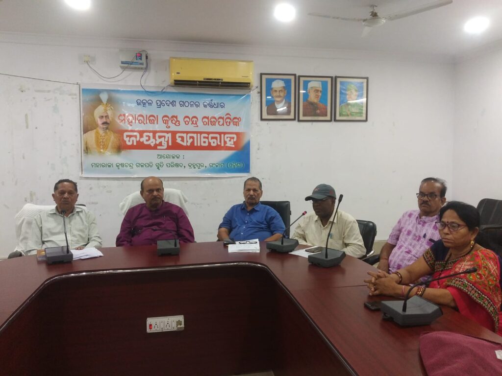ଉତ୍କଳ ପ୍ରଦେଶ ଗଠନର କର୍ଣ୍ଣଧାର ତଥା ସ୍ବତନ୍ତ୍ର ଉତ୍କଳ ପ୍ରଦେଶର ପ୍ରଥମ ପ୍ରଧାନ ମନ୍ତ୍ରୀ ମହାରାଜା କୃଷ୍ଣଚନ୍ଦ୍ର ଗଜପତିଙ୍କ 134ତମ ଜୟନ୍ତୀ ଉତ୍ସବ ସ୍ଥାନୀୟ ଇଂଜିନିୟରିଂ ସ୍କୁଲ ଛକସ୍ଥିତ ରେଭେନ୍ୟୁୟ ଡାକବଙ୍ଗଳା ଠାରେ ସ୍ମୃତି ପରିଷଦ ଏବଂ ନବୀନ ପାଠାଗାର ଓ ସାହିତ୍ଯ ପ୍ରତିଷ୍ଠାନର ମିଳିତ ଆନୁକୂଲ୍ଯରେ ଅନୁଷ୍ଠିତ ଯାଇଛି।