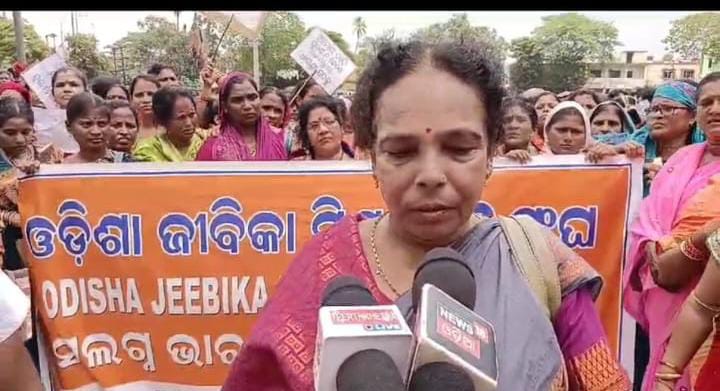 -ଜଗତସିଂହପୁର ଜିଲ୍ଲାରେ ଓଡିଶା ଜୀବିକା ମିଶନ ଅଧୀନରେ କାର୍ଯ୍ୟରତ ଇସି ମେମ୍ବରମାନଙ୍କ ପକ୍ଷରୁ ୪ଦଫା ଦାବି ନେଇ ଜିଲ୍ଲାପାଳଙ୍କ କାର୍ଯ୍ୟାଳୟ ସମ୍ମୁଖରେ ବିକ୍ଷୋଭ ପ୍ରଦର୍ଶନ କରାଯାଇଛି ।