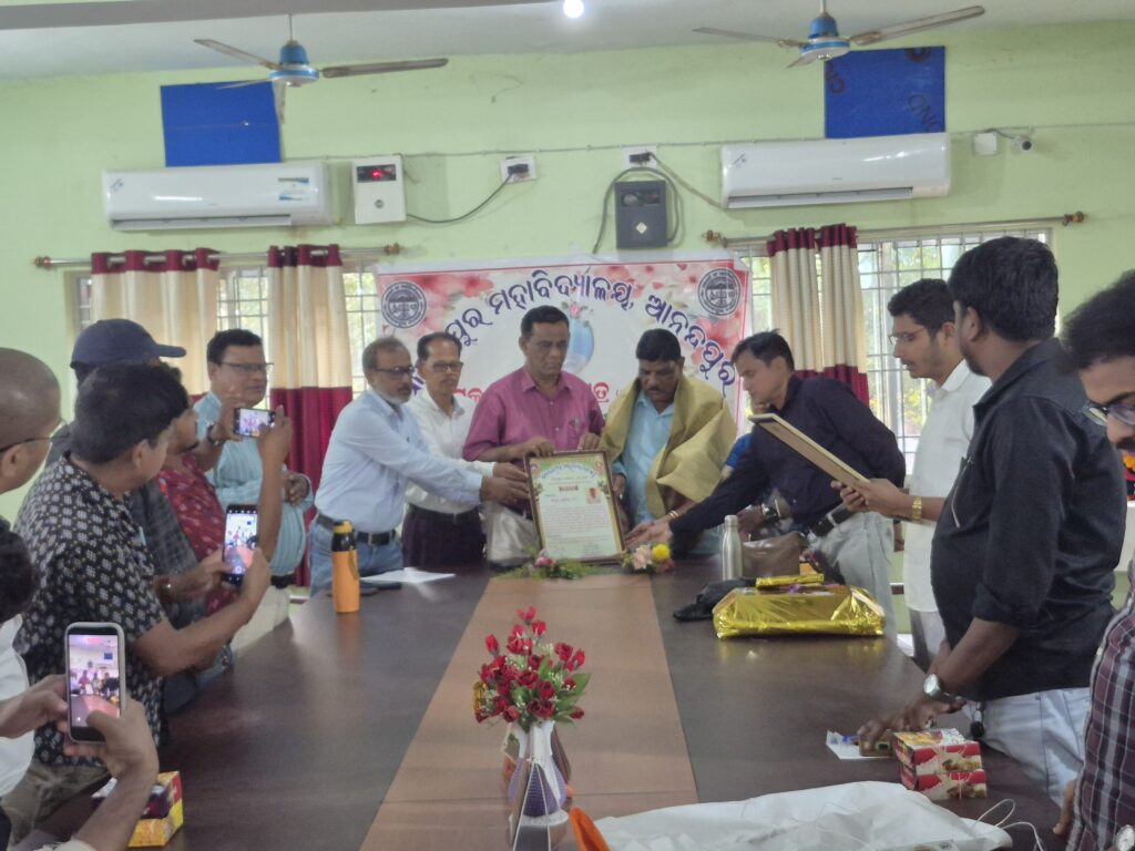 ଆନନ୍ଦପୁର ମହାବିଦ୍ୟାଳୟ ର ଷ୍ଟାଫ କମନ ରୁମ୍ ରେ ମହାବିଦ୍ୟାଳୟ ର ମୁଖ୍ୟ କିରାଣୀ ଲକ୍ଷ୍ମୀଧର ପାତ୍ର ଙ୍କ ଅବସର କାଳୀନ ସମ୍ବର୍ଦ୍ଧନା ସଭା ଅନୁଷ୍ଠିତ ହୋଇଯାଇଅଛି