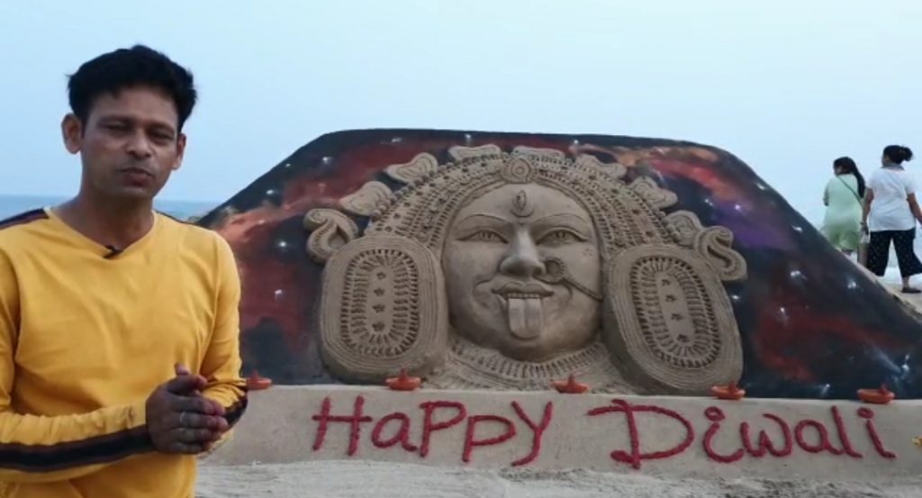 ଦୀପାବଳି ଉପଲକ୍ଷେ ପୁରୀ ବେଳାଭୂମି ରେ ବାଲୁକା କଳା ନିର୍ମାଣ କଲେ ମାନସ କୁମାର ସାହୁ