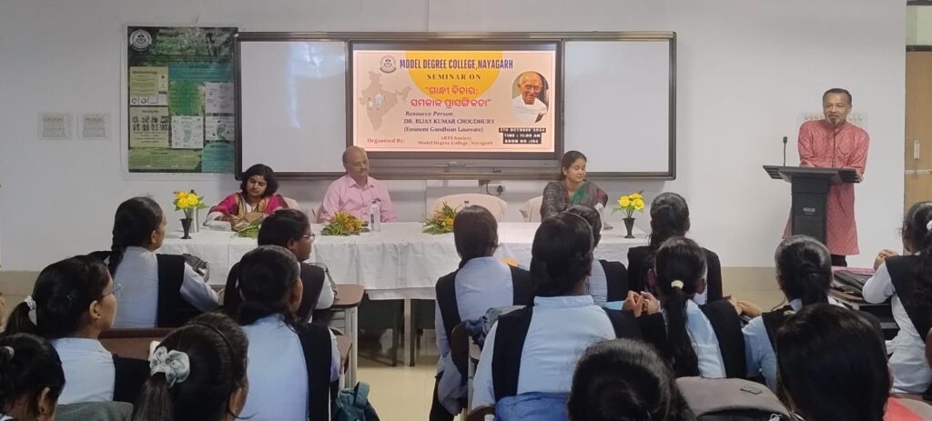 ଲାଠିପଡାସ୍ଥିତ ମଡେଲ ଡିଗ୍ରୀ କଲେଜଠାରେ କଳା ସମାଜ ଆନୁକୁଲ୍ୟରେ ଗାନ୍ଧୀଜୀଙ୍କ ଚିନ୍ତାଧାରାକୁ ନେଇ ଏକ ଆଲୋଚନାଚକ୍ର ଅଧ୍ୟକ୍ଷ ଡକ୍ଟର ମାନସ ରଞ୍ଜନ ଶତପଥୀଙ୍କ ପୈ।ରୋହିତ୍ୟରେ ଅନୁଷ୍ଠିତ ହୋଇଯାଇଅଛି। ପ୍ରଖ୍ୟାତ ସାହିତ୍ୟିକ ତଥା ଗାନ୍ଧୀ ଆଲୋଚକ ଡକ୍ଟର ବିଜୟ କୁମାର ଚୈ।ଧୁରୀ ଯୋଗ ଦେଇ ‘ଗାନ୍ଧୀ ବିଚାର;ସମକାଳ ପ୍ରାସଙ୍ଗିକତା’ ଉପରେ ନିଜର ବକ୍ତବ୍ୟ ପ୍ରଦାନ କରିଥିଲେ। ଆଧୁନିକ ସମାଜରେ ଗାନ୍ଧୀ ଚେତନାର ଉପଯୋଗିତା ତଥା ଦୈନନ୍ଦିନ ଜୀବନରେ ଗାନ୍ଧୀଙ୍କ ଆଦର୍ଶରେ ଅନୁପ୍ରାଣିତ ହୋଇ କାର୍ଯ୍ୟ କରିବା ଉପରେ