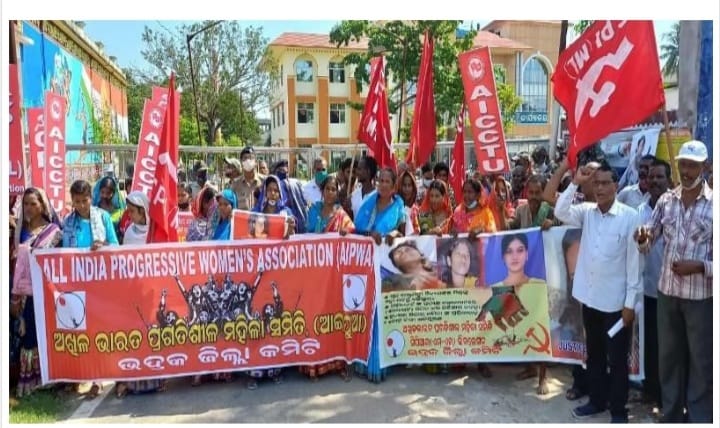 ଭଦ୍ରକ : ୨୨/୧୦:- ଆଜି ଅଖିଳ ଭାରତ ପ୍ରଗତୀଶୀଳ ମହିଳା ସମିତି(ଆଇପୁଆ) ପକ୍ଷରୁ ଏକ ବିଶାଳ ବିକ୍ଷୋଭ ଶୋଭାଯାତ୍ରା ଓ ପ୍ରତିବାଦ ସଭା ସଂପାଦିକା ତଥା ରାଜ୍ୟ ସହ ସଂପାଦିକା ଜୟନ୍ତୀ ବିଶ୍ୱାଳଙ୍କ ନେତୃତ୍ୱରେ ଅନୁଷ୍ଠିତ ହୋଇଯାଇଛି । ବନ୍ତ ଛକ ଠାରୁ ଏହି ଶୋଭାଯାତ୍ରା ବାହାରି ସହର ପରିକ୍ରମା କରିବା ପରେ ଜିଲ୍ଲାପାଳଙ୍କ କାର୍ଯ୍ୟାଳୟ ନିକଟରେ ସିପିଆଇ(ଏମଏଲ) ଲିବରେସନର ଜିଲ୍ଲା ସଂପାଦକ ସମର ବଳଙ୍କ ସଭାପତିତ୍ୱରେ ଏକ ପ୍ରତିବାଦ ସଭା ଅନୁଷ୍ଠିତ ହୋଇଥିଲା । ଉକ୍ତ ଘଟଣାରେ ଗୃହ ରାଷ୍ଟ୍ର ମନ୍ତ୍ରୀଙ୍କୁ ମନ୍ତ୍ରୀମଣ୍ଡଳରୁ ବହିଷ୍କାର କରିବାକୁ ସେ ଦାବି କରିଥିଲେ ।