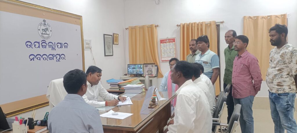 ନବରଙ୍ଗପୁର ଜିଲ୍ଲା ଅନୁସୂଚିତ ଜାତିସଙ୍ଘ ଉମରକୋଟ ଶାଖା ପକ୍ଷରୁ ସଭାଗୃହ ନିମନ୍ତେ ଜମି ପ୍ରଦାନ ପାଇଁ ଉପ ଜିଲ୍ଲାପାଳଙ୍କୁ ଦାବିପତ୍ର ପ୍ରଦାନ