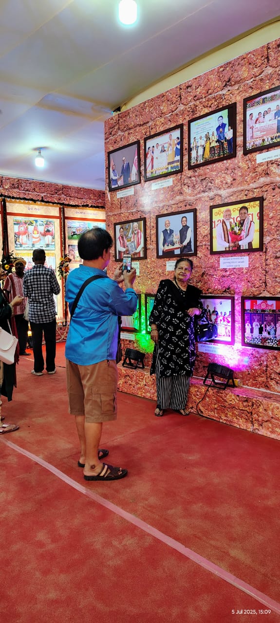 ପୁରୀ-ତା ୫.୭.୨୦୨୫- ବିଶ୍ୱପ୍ରସିଦ୍ଧ ରଥଯାତ୍ରା ଅବସରରେ ସ୍ଥାନୀୟ ପୁରୀ ହୋଟେଲ ସମ୍ମୁଖ ବେଳାଭୂମିରେ ଆୟୋଜିତ ଜାତୀୟସ୍ତରୀୟ ପଲ୍ଲିଶ୍ରୀ ମେଳାରେ ମୁଖ୍ୟ ଆକର୍ଷଣ ପାଲଟିଛି ସୂଚନା ଓ ଲୋକସମ୍ପର୍କ ବିଭାଗ ପକ୍ଷରୁ ଆୟୋଜିତ ଫଟୋଚିତ୍ର ପ୍ରଦର୍ଶନୀ । ପ୍ରତିବର୍ଷ ଭଳି ବିଭାଗ ପକ୍ଷରୁ ଚଳିତ ବର୍ଷ ମଧ୍ୟ ଫଟୋଚିତ୍ର ପ୍ରଦର୍ଶନୀ ଆୟୋଜିତ ହୋଇଥିବା ବେଳେ ଏହାକୁ ଦେଖିବା ପାଇଁ ଦର୍ଶକଙ୍କ ବେଶ୍ ଭିଡ଼ ଦେଖିବାକୁ ମିଳିଛି । ଗତ ଜୁନ୍ ୨୫ତାରିଖରୁ ଆରମ୍ଭ ହୋଇଥିବା ଏହି ଫଟୋଚିତ୍ର ପ୍ରଦର୍ଶନୀରେ ରଥଯାତ୍ରା ସହିତ ଜଡ଼ିତ ବିଭିନ୍ନ ପରମ୍ପରା, ନୀତିକାନ୍ତି, ତିନି ଠାକୁରଙ୍କ ବେଶ, ରଥଯାତ୍ରା ସମ୍ପର୍କିତ ବହୁ ପୁରାତନ ଖବର ଓ ନଥି ଏବଂ ରାଜ୍ୟ ସରକାରଙ୍କ ବିଭିନ୍ନ ଉନ୍ନୟନମୂଳକ କାର୍ଯ୍ୟକ୍ରମ ଓ ଯୋଜନା ସ୍ଥାନିତ ହୋଇଛି । ପଲ୍ଲିଶ୍ରୀ ମେଳାକୁ ଆସୁଥିବା ଆଗନ୍ତୁକମାନେ ଏହାକୁ ଦେଖିବାକୁ ବେଶ୍ ଆଗ୍ରହୀ ହେଉଛନ୍ତି । ବିଶେଷ କରି ପୁରାତନ ଖବରକାଗଜ ଏବଂ ନଥିକୁ ସେମାନେ ପଢିବା ସହିତ ପ୍ରଦର୍ଶନୀର ବିଭିନ୍ନ ସ୍ଥାନରେ ସେଲଫି ନେଉଛନ୍ତି ।