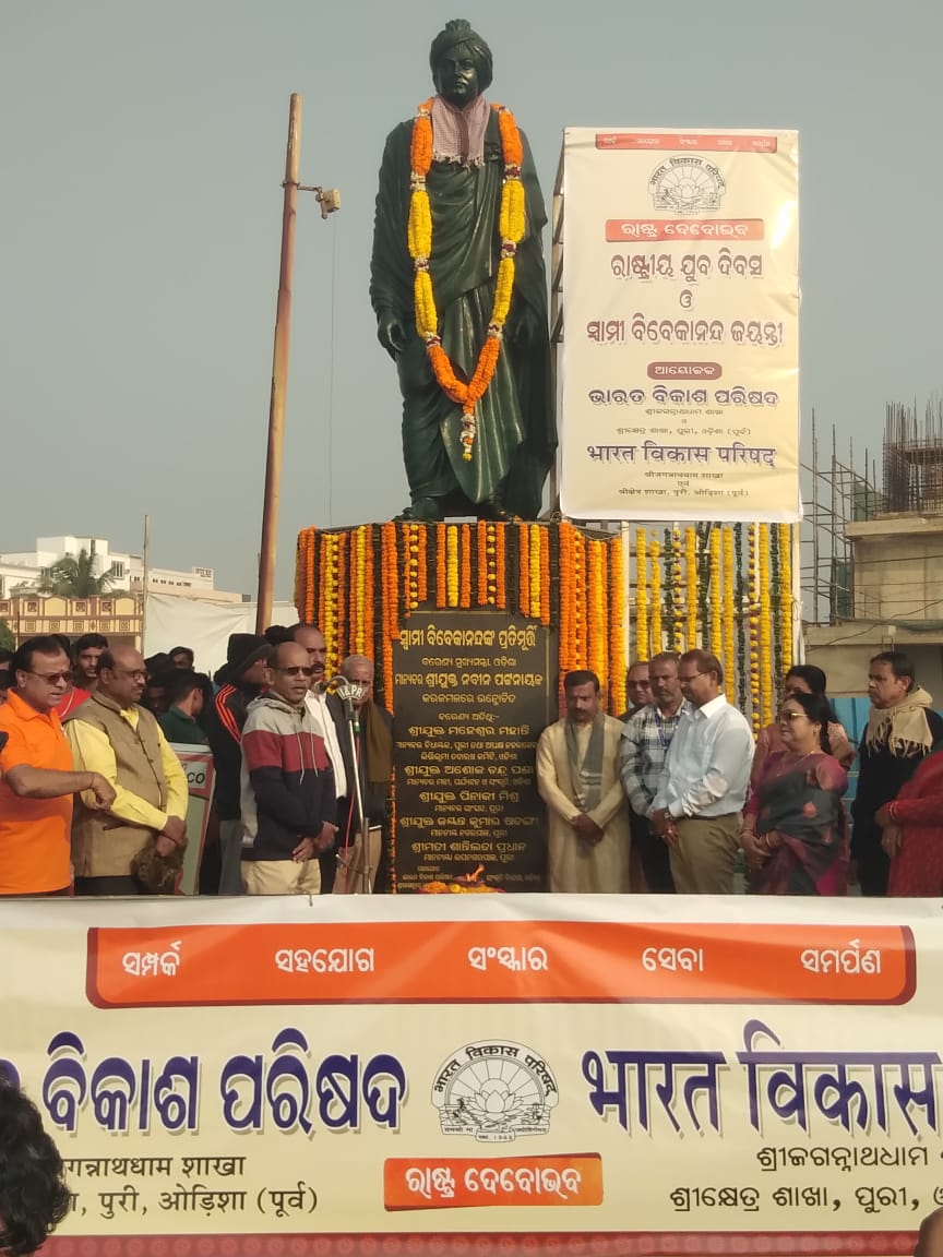 ସ୍ବାମୀ ବିବେକାନନ୍ଦ ଙ୍କ ଜନ୍ମଦିନ ତଥା ଜାତୀୟ ଯୁବ ଦିବସ ସ୍ଥାନୀୟ ସମୁଦ୍ରକୂଳ ଦିଗ ବାରିଣି ଥରେ ଥିବା ବିବେକାନନ୍ଦ ଙ୍କ ପ୍ରତିମୂର୍ତ୍ତି ସ୍ଥଳରେ ଭାରତ ବିକାଶ ପରିଷଦ ତରଫରୁ ମହା ସମାରୋହରେ ପାଳିତ ହୋଇଛି । ଏଥିରେ ମୁଖ୍ୟ ଅତିଥି ଶ୍ରୀଯୁକ୍ତ ଶରତ ଚନ୍ଦ୍ର ବେହେରା ସ୍ୱାମୀଜୀ ଙ୍କ ପୂର୍ଣ୍ଣାବୟବ ପ୍ରତିମୂର୍ତ୍ତୀରେ ମାଲ୍ୟାର୍ପଣ କରି ଯୁବ ପିଢୀ ଙ୍କୁ ଏକ ସୁସ୍ଥ ସମୃଦ୍ଧ ବିକଶିତ ଭାରତ ବର୍ଷ ଗଠନରେ ବ୍ରତୀ ହେବାକୁ ଆହ୍ବାନ ଦେଇଥିଲେ ।ମୁଖ୍ୟ ବକ୍ତା ରୂପେ ସୂଚନା ଲୋକସମ୍ପର୍କ ଉପନିର୍ଦେଶକ ଶ୍ରୀଯୁକ୍ତ ସନ୍ତୋଷ କୁମାର ସେଠୀ ଯୋଗ ଦେଇ ବିପଥ ଗାମୀ ହେଉଥିବା ଯୁବ ସମାଜ କୁ ବିବେକାନନ୍ଦ ଙ୍କ ଆଦର୍ଶରେ ଅନୁପ୍ରାଣିତ ହେବାକୁ ପରାମର୍ଶ ଦେଇଥିଲେ। ଭାରତ ବିକାଶ ପରିଷଦ ର ସାଧାରଣ ସମ୍ପାଦକ ସନ୍ତୋଷ କୁମାର ମହାନ୍ତି ସ୍ୱାମୀଜୀ ଙ୍କ ଦର୍ଶନ ତଥା ଆଦର୍ଶରେ ପ୍ରତିଷ୍ଠିତ ଭାରତ ବିକାଶ ପରିଷଦ ର ଲକ୍ଷ୍ୟ ଏବଂ ଉଦ୍ୟେଶ କଥା ପ୍ରକାଶ କରିଥିଲେ। ପ୍ରାତଃ ସମୟରେ ପରିଷଦ ତରଫରୁ ସମୁଦ୍ରକୂଳ ସଫେଇ କାର୍ଯ୍ୟକ୍ରମ ଅନୁଷ୍ଠିତ ହୋଇଥିଲା । ଏଥିରେ ବେଦ କର୍ମକାଣ୍ଡ ବିଦ୍ୟାଳୟ ର ଛାତ୍ର ଛାତ୍ରୀ, ସ୍ୱଦେଶୀ ଜାଗରଣ ମଞ୍ଚ ଏବଂ ଅନ୍ୟାନ୍ୟ ସଂଗଠନ ସାମିଲ ହୋଇଥିଲେ ।ଭାରତ ବିକାଶ ତରଫରୁ ଉପାଧ୍ୟକ୍ଷ ବୁଦ୍ଧଦେବ ମହାପାତ୍ର, କ୍ଷେତ୍ରୀୟ ମହାସଚିବ ପୂର୍ଣ୍ଣ ଚନ୍ଦ୍ର ଖୁଣ୍ଟିଆ, ପଦ୍ମ ଲାଭ ପଣ୍ଡା , ସୁ ପ୍ରି ତି ରଥ, ମୀରା ମହାରଣା, କିଶୋର ପାତ୍ର, କିଶୋର ପଟ୍ଟନାୟକ, ପିତାମ୍ବର ମହାପାତ୍ର ପ୍ରମୁଖ ଯୋଗ ଦେଇଥିଲେ । ଶେଷରେ ପ୍ରାନ୍ତୀୟ ସଚିବ ସୌମେନ୍ଦ୍ର ଦାସ ସମସ୍ତଙ୍କୁ ଧନ୍ୟବାଦ୍ ଅର୍ପଣ କରିଥିଲେ ।