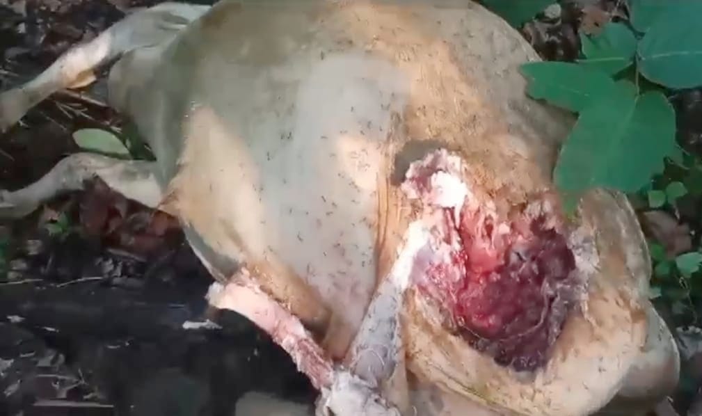 ଜଙ୍ଗଲରେ ଏକ କ୍ଷତାକ୍ତ ଗାଈ ମୃତାବସ୍ଥାରେ ଠାବ , ବାଘର ଆକ୍ରମଣ ଅନୁମାନ