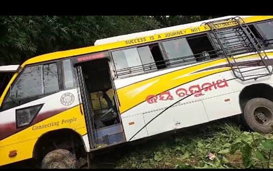 ରାସ୍ତା କଡ କୁ ଓଲଟିଲା ଯାତ୍ରୀ ଵାହୀ ବସ