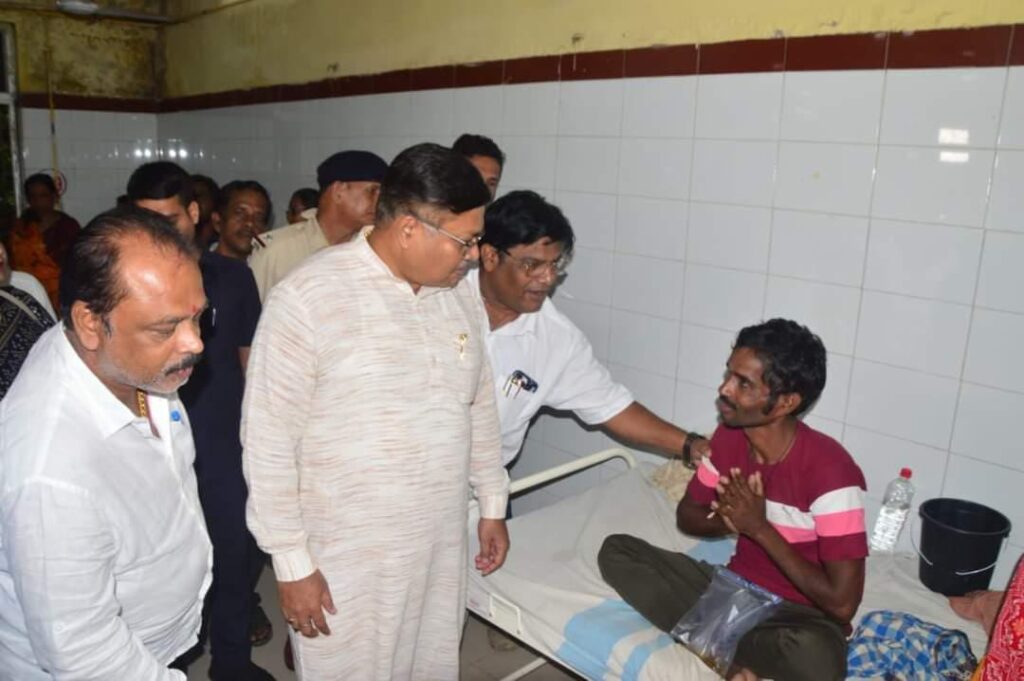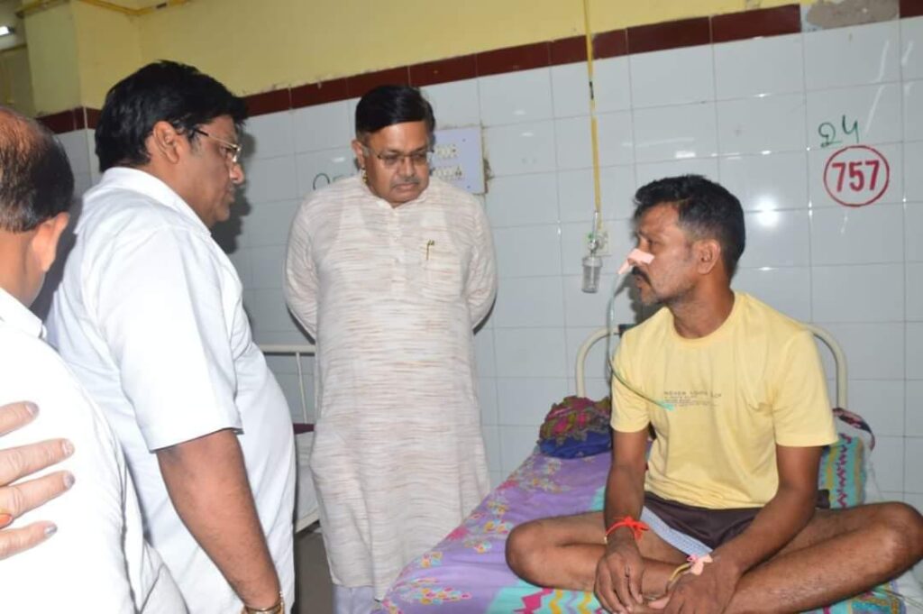 ବ୍ରହ୍ମପୁର :-୨୨/୦୮(ଗଞ୍ଜାମ ଜିଲ୍ଲା ଚ଼ିକିଟିରେ ବିଷାକ୍ତ ମଦ ପିଇ ଅସୁସ୍ଥ ହୋଇ ବ୍ରହ୍ମପୁର ବଡ ମେଡ଼ିକାଲରେ ଚିକିତ୍ସିତ ହେଉଥିବା ଆହତ ମାନଙ୍କୁ ଭେଟି ସେମାନଙ୍କ ସ୍ୱାସ୍ଥ୍ୟବସ୍ଥା ବିଷୟରେ ବୁଝି ସେମାନଙ୍କ ଆଶୁ ଆରୋଗ୍ୟ କାମନା କରିବା ସହ ମେଡ଼ିକାଲ କର୍ତ୍ତୁପକ୍ଷ ଓ ଚିକିତ୍ସା ଦାୟିତ୍ୱରେ ଥିବା ମୁଖ୍ୟ ଡାକ୍ତରମାନଙ୍କ ସହ ଆଲୋଚନା କରି ସମସ୍ତଙ୍କୁ ସର୍ବୋତ୍ତମ ଚିକିତ୍ସା ଯୋଗାଇଦେବା ପାଇଁ ନିର୍ଦ୍ଦେଶ ଦେଇଥିଲେ ରାଜ୍ୟ ସରକାରଙ୍କ ଆଇନ, ପୁର୍ତ୍ତ ଓ ଅବକାରୀ ବିଭାଗର ମାନ୍ୟବର ମନ୍ତ୍ରୀ ପୃଥ୍ୱୀରାଜ ହରିଚନ୍ଦନ ।