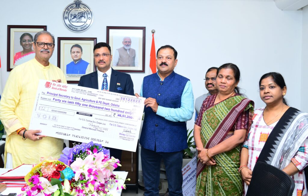 ଓଡ଼ିଶା କୃଷି ଶିଳ୍ପ ନିଗମ, ଓଡ଼ିଶା ରାଜ୍ୟ ବିହନ ନିଗମ ଲିମିଟେଡ୍ ଏବଂ ଓଡ଼ିଶା ରାଜ୍ୟ କାଜୁ ଉନ୍ନୟନ ନିଗମର ମୋଟ ୬ କୋଟି ୩୯ ଲକ୍ଷ ୯୭ ହଜାର ୫୮୯ ଟଙ୍କା ଓଡ଼ିଶା ସରକାରଙ୍କୁ ଲାଭାଂଶ ପ୍ରଦାନ