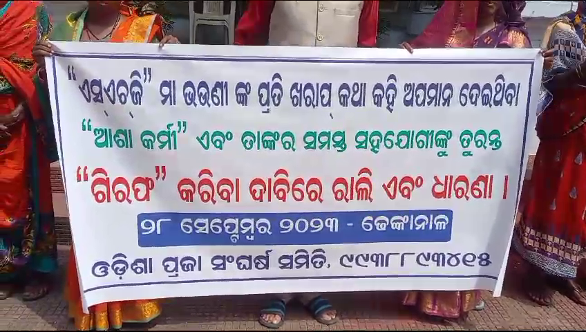 ବିଭିନ୍ନ ଦାବି ନେଇ ଆଶା କର୍ମୀମାନେ ଭୂବନେଶ୍ଵରରେ ଆନ୍ଦୋଳନ କରୁଛନ୍ତି । ଜଣେ ଆଶା କର୍ମୀ ମିଡିଆ ସାମନାରେ ଏସ୍ଏଚ୍ର୍ଜି ମା ଭଉଣୀଙ୍କ ପ୍ରତି ଖରାପ କଥା କହି ଅପମାନ ଦେବା ଭିଡିଓ ଭାଇରାଲ ହେବା ପରେ ନାରୀର ସମ୍ମାନ ରକ୍ଷା ପାଇଁ ଆଜିର ଆନ୍ଦୋଳନ କରିବାକୁ ଆମେ ବାଧ୍ୟ ହେଲୁ ବୋଲି ଇଂ ହୋତା ଇତ୍ୟବସରରେ ପ୍ରକାଶ କରିଛନ୍ତି ।