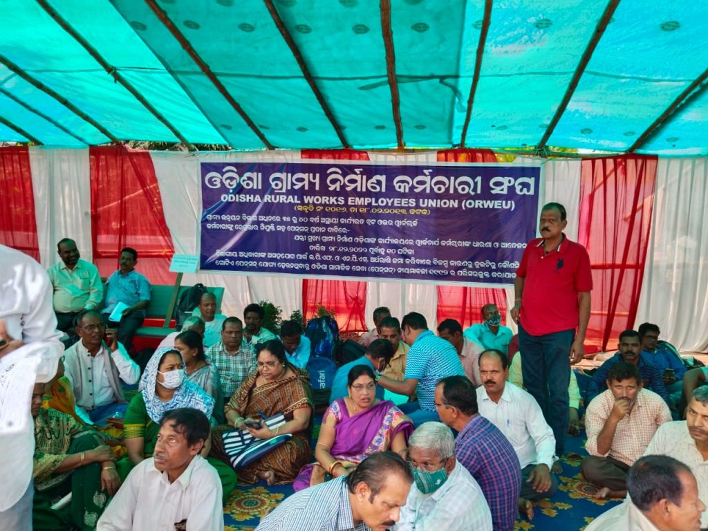 ଦ୍ଵିତୀୟ ଦିନରେ ପହଞ୍ଚିଲା ଓଡିଶା ଗ୍ରାମ୍ୟ ନିର୍ମାଣ କର୍ମଚାରୀ ସଂଘର ଧାରଣା