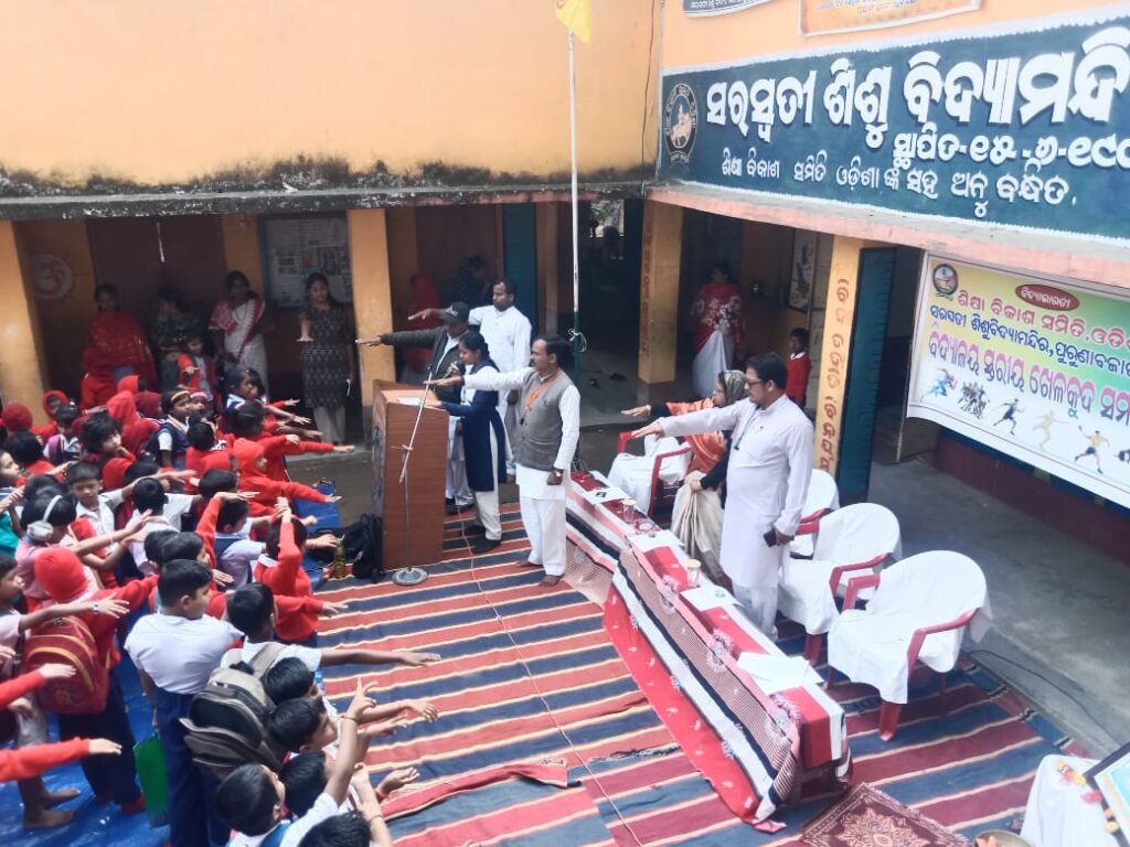 ଭଦ୍ରକ (୨୦୨୫-୨୬ ) ର ୩୧ ତମ ବାର୍ଷିକ କ୍ରୀଡା ର ଉଦଘାଟନ l ତା ( ୨୭/୧୧/୨୫) ରିଖ, ଗୁରୁବାର ସକାଳ ୮ ଘଟିକାରେ ବିଦ୍ୟା ଭାରତୀ, ଶିକ୍ଷା ବିକାଶ ସମିତି, ଓଡ଼ିଶାଙ୍କ ଯୋଜନା ଆଧାରରେ, ସ.ଶି.ବି.ମ. ପୁରୁଣାବଜାର,ଭଦ୍ରକରେ, ଶ୍ରେଣୀ ଅରୁଣ ଠାରୁ ଦଶମ ଶ୍ରେଣୀ ପର୍ଯ୍ୟନ୍ତ ପିଲାମାନଙ୍କ ନିମିତ୍ତ ଉଦ୍ଦିଷ୍ଟ “୩୧ତମ ବାର୍ଷିକ କ୍ରୀଡା “ ବିଦ୍ୟାଳୟର ପ୍ରାଙ୍ଗଣରେ ଉଦଘାଟିତ ହୋଇସାରିଛି |ଏହି କ୍ରୀଡା ପ୍ରତିଯୋଗିତାରେ ପାଖାପାଖୂ ୭୦୦ ଜଣ ଭାଇ ଓ ଭଉଣୀ ଅଂଶଗ୍ରହଣ କରିଥିଲେ | ଭକ୍ତି କ୍ରୀଡା ଉତ୍ସବରେ ପୁରୁଣାବଜାର ଥାନାର ଭାରପ୍ରାପ୍ତ IIC ଶ୍ରୀଯୁକ୍ତ ସୁଶାନ୍ତ କୁମାର ସାହୁ ମହାଶୟ ମୁଖ୍ୟ ଅତିଥୂ ଭାବେ ଯୋଗଦାନ କରି ପିଲାମାନଙ୍କୁ ଖେକ ତଥା ଅନ୍ୟାନ୍ୟ କାର୍ଯ୍ୟରେ ନିଜକୁ ଜଣେ ଉପଯୁକ୍ତ ପ୍ରତିଯୋଗୀ ଭାବେ ଗଢି ତୋଳିବା ପାଇଁ ଉପଦେଶ ମୂଳକ କଥା କହିଥିବା ବେଳେ, ସଭାପତି ଶ୍ରୀଯୁକୁ ବିଜୟ କୁମାର ବହଳୀ ମହାଶୟ ଅଧ୍ୟୟନରତ ପିଲାମାନଙ୍କ ପାଇଁ କିଛି ଅଭିଭାଷଣ ରଖୁଥିଲେ |