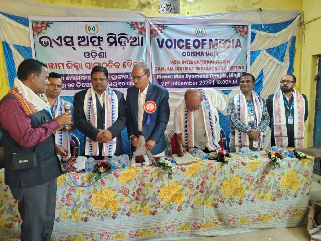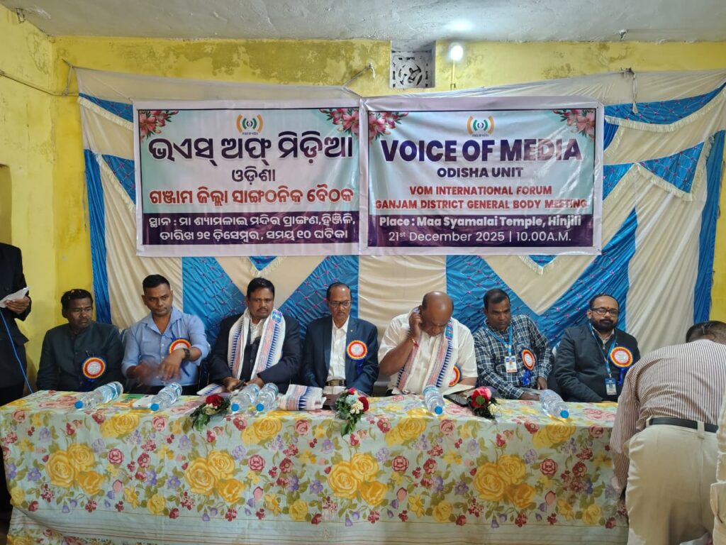 ପୁରୁଷୋତ୍ତମପୁର ୨୨/୧୨ହିଞ୍ଜିଳିକାଟୁ ନିକଟସ୍ଥ ମା ଶ୍ୟାମଳାଇ ମନ୍ଦିର ପ୍ରାଙ୍ଗଣ ରେ ଗଞ୍ଜାମ ଜିଲ୍ଲା ର ଭଏସ ଅଫ ମିଡ଼ିଆ ତରଫରୁ ଏକ ସାଙ୍ଗଠନିକ ବୈଠକ ଅନୁଷ୍ଠିତ ହୋଇଯାଇଛି । ଚଳିତ ମାସ ୨୧ ତାରିଖ ରବିବାର ଦିନ ସମୟ ସକାଳ ୧୦ ଘଣ୍ଟା ସମୟରେ ଏହି କାର୍ଯ୍ୟକ୍ରମ ଆରମ୍ଭ ହୋଇଯାଇଛି । ଗଞ୍ଜାମ ଜିଲ୍ଲା ସଭାପତି ରାମ ପ୍ରସାଦ ସାମଲଙ୍କ ସଭାପତିତ୍ୱରେ ହିଞ୍ଜିଳି ବ୍ଲକ ସଭାପତି ରଞ୍ଜିତ କୁମାର ପଳାଇ ଙ୍କ ସଂଯୋଜନା ରେ ଏହି ସଭା କୁ ଆୟୋଜନ କରାଯାଇଥିଲା ଏଥିରେ ରାଜ୍ୟ ସଭାପତି ଡ.ପ୍ରଭାତ କୁମାର ମିଶ୍ର ମୁଖ୍ୟ ଅତିଥି,ଖୋର୍ଦ୍ଧା ଜିଲ୍ଲା ସଭାପତି ଧନେଶ୍ୱର ବିଧାର ମୁଖ୍ୟ ବକ୍ତା,ସମ୍ମାନିତ ଅତିଥି ରାଜ୍ୟ ସାଧାରଣ ସମ୍ପାଦକ ସୁକାନ୍ତ କୁମାର ପରିଡା,ରାଜ୍ୟ କୋଷାଧ୍ୟକ୍ଷ ସରୋଜ କୁମାର ମୁଦୁଲି ,ରାଜ୍ୟ କାର୍ଯ୍ୟକାରୀ ସଭାପତି ନିରଞ୍ଜନ ପତି,ରାଜ୍ୟ କାର୍ଯ୍ୟନିର୍ବାହୀ ଅରୁଣ କୁମାର ଗୌଡ଼ ଓ ହିଞ୍ଜିଳି ବ୍ଳକ ସଭାପତି ରଂଜିତ କୁମାର ପୋଲାଇଙ୍କ ମଞ୍ଚାସୀନ ରହି ଜିଲ୍ଲାର ଭଏସ ଅଫ ମିଡିଆରୁ ଆସିଥିବା ୨୨ଟି ବ୍ଳକର ସାମ୍ବାଦିକ ମାନଙ୍କୁ ନେଇ ବନ୍ଧୁ ମିଳନ ସହ ଜିଲ୍ଲା ସ୍ତରୀୟ ସାଂଗଠନିକ ବୈଠକ ହୋଇଥିଲା । ଉକ୍ତ ସଭାକାର୍ଯ୍ଯରେ ସାମ୍ବାଦିକ ମାନଙ୍କ ସମସ୍ୟା ଉପରେ ଆଲୋଚନା କରାଯାଇଥିଲା । ଆମ ସଂଘର ସାମ୍ବାଦିକଙ୍କ ଉନ୍ନତି ନେଇ ସଦସ୍ୟଙ୍କୁ ୧୦ ଲକ୍ଷ ଟଙ୍କାର ବିମା ସହ ପିଲାମାନଙ୍କ ପାଇଁ ପାଠପଢ଼ା ଉପକରଣ ଏବଂ ୬୦ ବର୍ଷରୁ ଉର୍ଦ୍ଧ୍ବ ସାମ୍ବାଦିକଙ୍କ ପାଇଁ ପେନସନ ସୁବିଧା ଯୋଗାଇ ଦିଆଯାଇଛି ବୋଲି ରାଜ୍ୟ ସଭାପତି ମିଶ୍ର କହିଛନ୍ତି ।