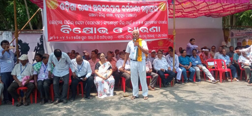 କେନ୍ଦ୍ରୀୟ ସିଭିଲ ସେବା(ପେନସନ) ସଂଶୋଧିତ ବିଲ ମାର୍ଚ୍ଚ ୨୫ ପ୍ରତ୍ୟାହାର ଦାବିରେ ବ୍ରହ୍ମପୁରରେ ପେନ୍ସନର ମାନଙ୍କ ବିରାଟ ଗଣ ଧାରଣ ଓ ବିକ୍ଷୋଭ