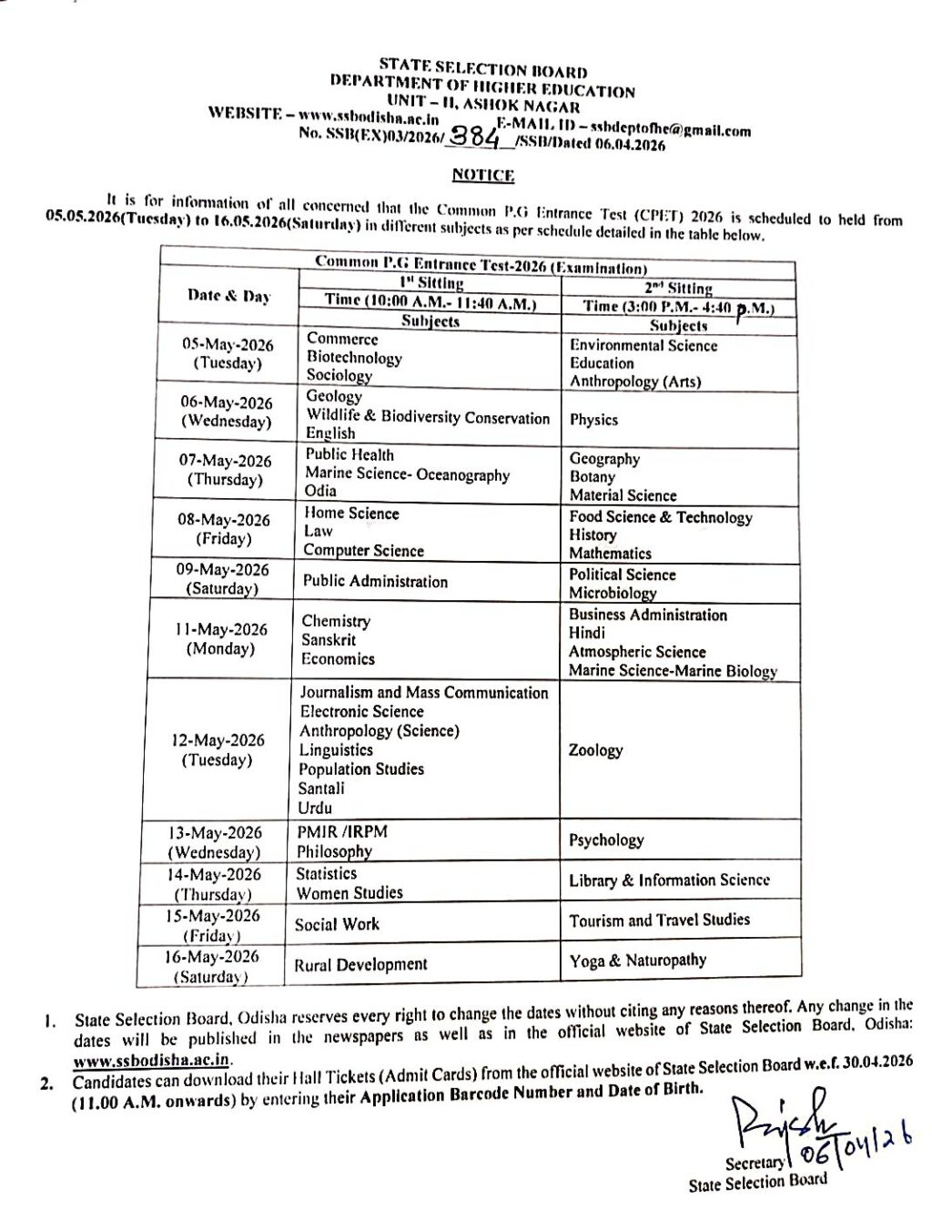 ମେ ୫ରୁ ପିଜି ପ୍ରବେଶିକା ପରୀକ୍ଷା-ଉଚ୍ଚଶିକ୍ଷା ବିଭାଗ ଏସଏସବି ପକ୍ଷରୁ ପିଜି ପ୍ରବେଶିକା ପରୀକ୍ଷା ସୂଚୀ ପ୍ରକାଶିତ-ମେ’ ୫ରୁ ୧୬ ପର୍ଯ୍ୟନ୍ତ ଅନୁଷ୍ଠିତ ହେବ ପ୍ରବେଶିକା ପରୀକ୍ଷା-୫୦ଟି ସ୍ନାତକୋତ୍ତର ବିଷୟ ପାଇଁ ହେବ ପ୍ରବେଶିକା ପରୀକ୍ଷା-୩୧,୯୧୫ ପିଜି ସିଟ୍ ନିମନ୍ତେ ଆବେଦନ କରିଛନ୍ତି ୫୮,୭୦୮ ଛାତ୍ରଛାତ୍ରୀ