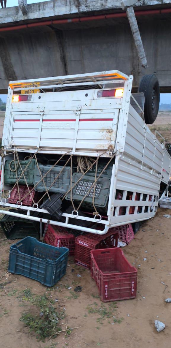 ବ୍ରିଜ ତଲକୁ ଖସିପଡିଲା ପିକଅପ ଗାଡ଼ି