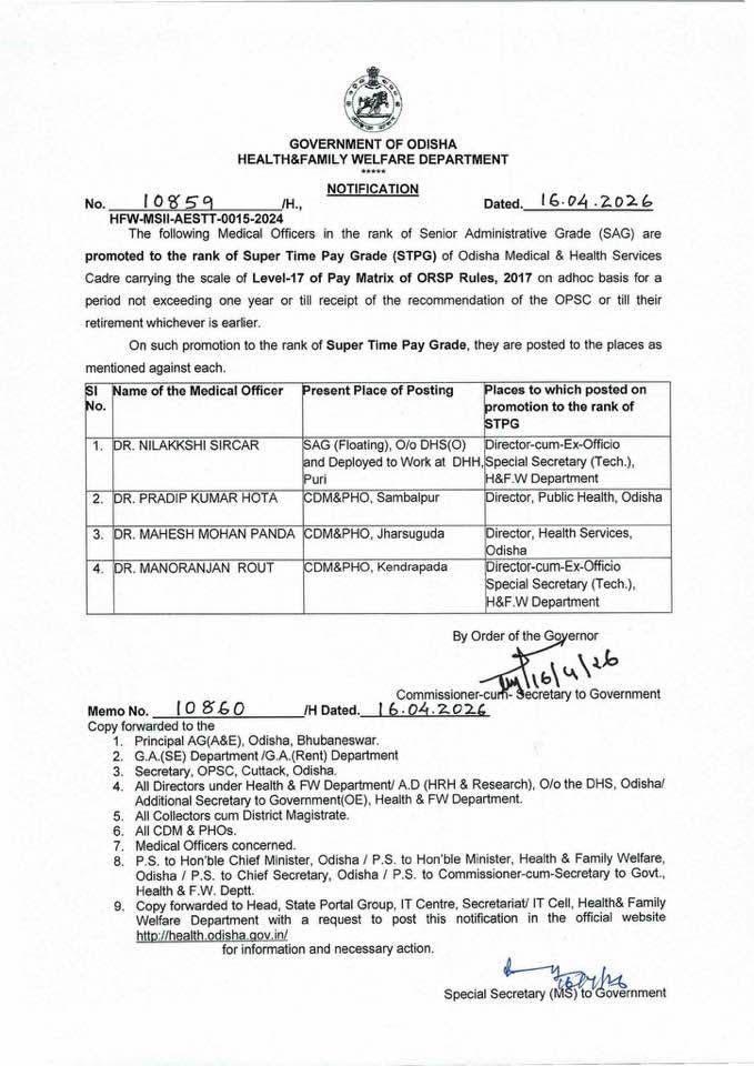ପ୍ରଦୀପ ହୋତା ଜନସ୍ବାସ୍ଥ୍ୟ ନିର୍ଦ୍ଦେଶକ-ଜନସ୍ବାସ୍ଥ୍ୟ ନିର୍ଦ୍ଦେଶକ ଡାକ୍ତର ନୀଳକଣ୍ଠ ମିଶ୍ରଙ୍କ ବଦଳି-ସ୍ବାସ୍ଥ୍ୟ ଓ ପରିବାର କଲ୍ୟାଣ ସ୍ବତନ୍ତ୍ର ସଚିବ ଭାବେ ନିଯୁକ୍ତି-ଏନେଇ ସ୍ବାସ୍ଥ୍ୟ ଓ ପରିବାର କଲ୍ୟାଣ ବିଭାଗ ପକ୍ଷରୁ ନିର୍ଦ୍ଦେଶ ଜାରି-ସମ୍ବଲପୁର CDMO ପ୍ରଦୀପ ହୋତାଙ୍କୁ ଜନସ୍ବାସ୍ଥ୍ୟ ନିର୍ଦ୍ଦେଶକ ଦାୟିତ୍ବ-ମହେଶ ମୋହନ ପଣ୍ଡା ହେଲେ ସ୍ବାସ୍ଥ୍ୟ ସେବା ନିର୍ଦ୍ଦେଶକ