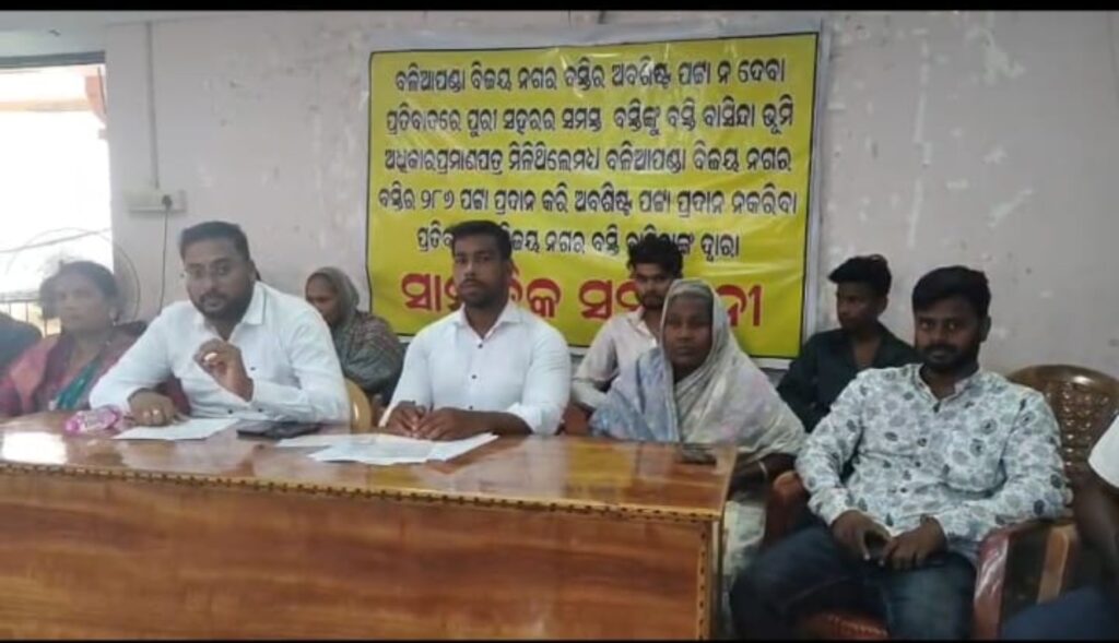 ପୁରୀ ବଳିଆ ପଣ୍ଡା ବସ୍ତି ବାସିନ୍ଦା ଙ୍କ ପଟ୍ଟା ମିଳିବା ବିଳମ୍ବ ନେଇ ସାମ୍ବାଦିକ ସମ୍ମିଳନୀ