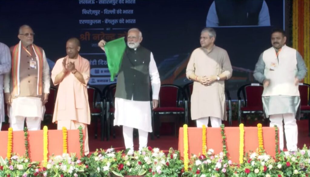 ବାରାଣସୀରୁ ଚାରୋଟି ନୂତନ ବନ୍ଦେ ଭାରତ ଏକ୍ସପ୍ରେସ ଟ୍ରେନକୁ ପତାକା ଦେଖାଇ ଶୁଭାରମ୍ଭ କଲେ ପ୍ରଧାନମନ୍ତ୍ରୀ ଶ୍ରୀ ନରେନ୍ଦ୍ର ମୋଦୀ