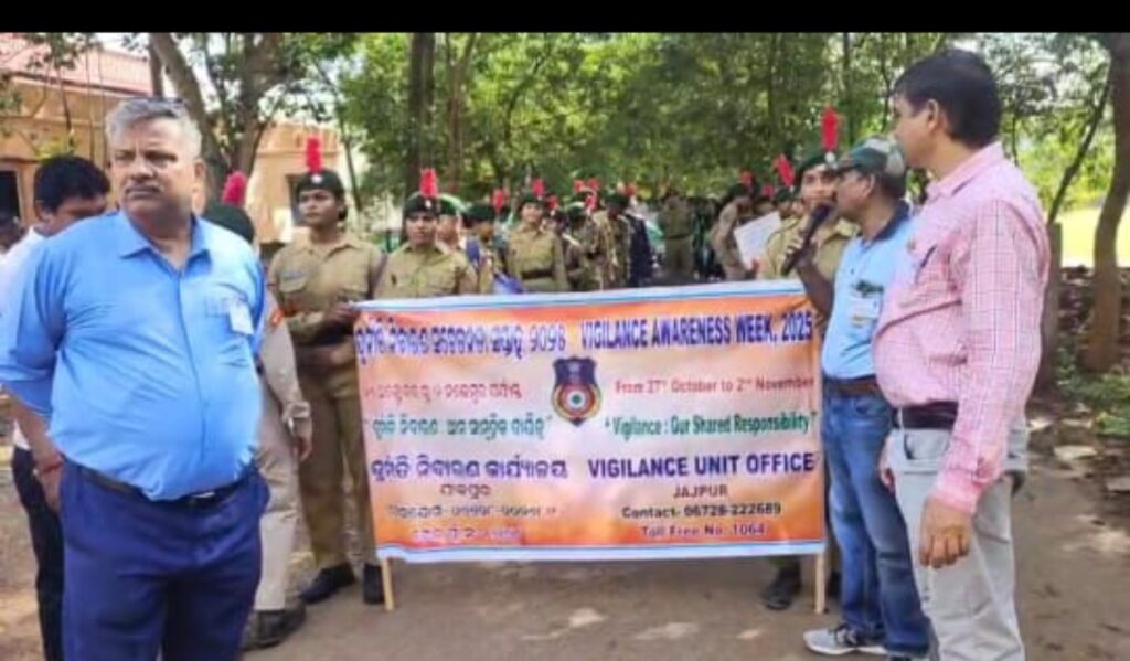 ଦୁର୍ନୀତି ନିବାରଣ ଆମ ସାମୂହିକ ଦାୟିତ୍ବ ” ବିଷୟକୁ ନେଇ ଶୋଭାଯାତ୍ରା ଓ ଶପଥ ପାଠ ।