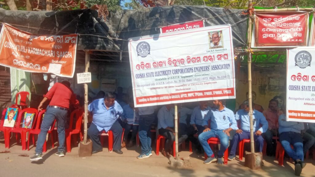 ବ୍ରହ୍ମପୁରରେ ଟିପିଏସଓଏଲଡି କର୍ପୋରେଟ୍ କାର୍ଯ୍ୟାଳୟ ସମ୍ମୁଖରେ ଟାଟା ପାୱାର ମ୍ୟାନେଜମେଣ୍ଟ ବିରୋଧରେ ବୈଦ୍ୟୁତିକ ଇଞ୍ଜିନିୟରମାନଙ୍କ ଗଣ ଧାରଣା।