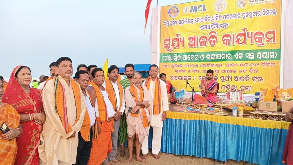 ପବିତ୍ର ଶ୍ରାବଣ ମାସ କୃଷ୍ଣପକ୍ଷ ଏକାଦଶୀ ତିଥି ଅବସରରେ ଧାର୍ମିକ ଓ ଆଧ୍ୟାତ୍ମିକ ଅନୁଷ୍ଠାନ “କୋଣାର୍କ ସୂର୍ଯ୍ୟ ଆଳତି ଟ୍ରଷ୍ଟ” ପକ୍ଷରୁ ଚନ୍ଦ୍ରଭାଗା ସମୁଦ୍ର କୂଳରେ ସୂର୍ଯ୍ୟ ଆଳତି ଅନୁଷ୍ଠିତ ହୋଇଯାଇଛି ।