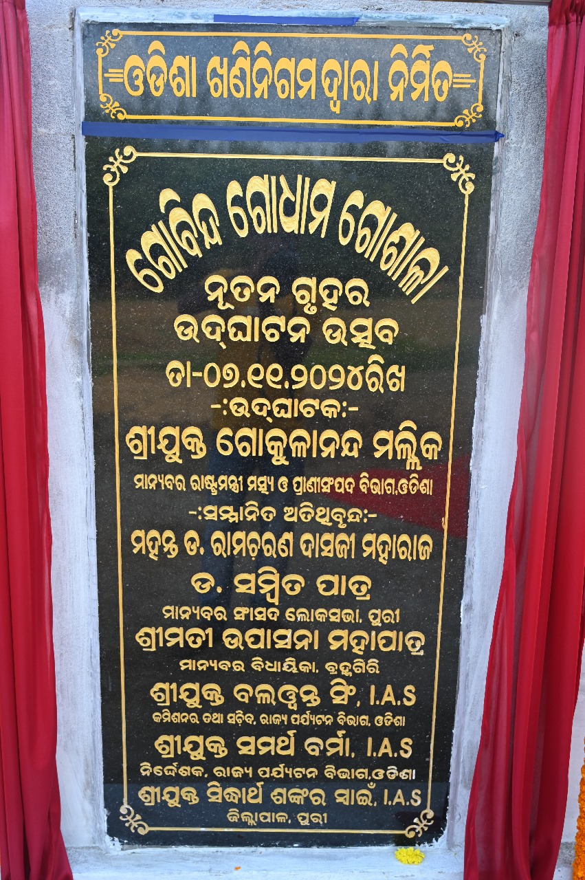 ପୁରୀ ଗୋବିନ୍ଦ ଗୋଧାମ ଗୋଶାଳା ପରିସରରେ ଓଡ଼ିଶା ଖଣି ନିଗମ ଦ୍ୱାରା ନିର୍ମିତ ନୂତନ ଗୃହର ଉଦଘାଟନ ଉତ୍ସବ ଅନୁଷ୍ଠିତ ହୋଇଯାଇଛି। ଓଡ଼ିଶାର ମତ୍ସ୍ୟ ଓ ପଶୁସମ୍ପଦ ରାଷ୍ଟ୍ରମନ୍ତ୍ରୀ ଶ୍ରୀଯୁକ୍ତ ଗୋକୁଳାନନ୍ଦ ମଲିକଙ୍କ କରକମଳରେ ଏହାର ଉଦଘାଟନ କରାଯାଇଛି । ଏହି ଉତ୍ସବରେ ମାନ୍ୟବର ରାଷ୍ଟ୍ରମନ୍ତ୍ରୀଙ୍କ ସହ ଗୋଶାଳାର ପ୍ରତିଷ୍ଠାତା ସଂପାଦକ ପଣ୍ଡିତ ବିଷ୍ଣୁ ଚରଣ ପଣ୍ଡା, ମୁଖପାତ୍ର ବରିଷ୍ଠ ସାମ୍ବାଦିକ ବିଷ୍ଣୁଦତ୍ତ ଦାସ, ସମ୍ମାନିତ ଅତିଥିରୂପେ ଓଡ଼ିଶା ଖଣିନିଗମ ଜନସମ୍ପର୍କ ଅଧିକାରୀ ସନ୍ଦୀପ ସେଠୀ, ନେବଳଦାସ ମଠର ମହନ୍ତ ଡକ୍ଟର ରାମଚରଣ ଦାସ ଜୀ ମହାରାଜ, ଖୋର୍ଦ୍ଧା ହରିପୁର ରାଧାକାନ୍ତ ମଠର ମହନ୍ତ ସଦାନନ୍ଦ ଦାସ ଜୀ ମହାରାଜ ଏବଂ ପୁରୀ ଜିଲ୍ଲା ପଶୁସମ୍ପଦ ଅଧିକାରୀ ଡକ୍ଟର ଶରତ ଚନ୍ଦ୍ର ବେହେରା ପ୍ରମୁଖ ଯୋଗ ଦେଇଥିଲେ।