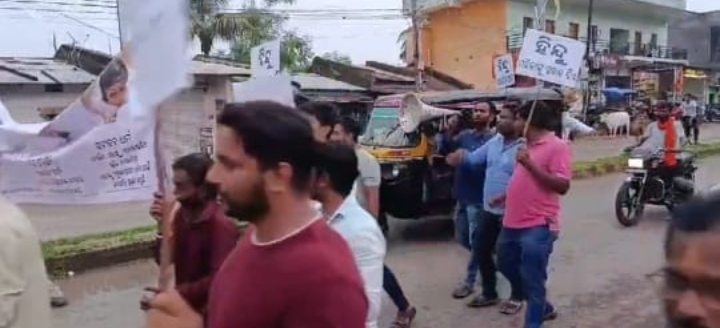 ଦେଶର ରାଜନୀତି ଏଭଳି ଦିଗକୁ ଗଲାଣି ଯେ କିଛି ରାଜନୈତିକ ଦଳ ର ନେତା ନିଜ ରାଜନୀତି ତାୱାରେ ଧର୍ମର ରୁଟି ସେକିବାକୁ ପଛଘୁଞ୍ଚା ଦେଉନାହାନ୍ତି!ନିଜ ଫାଇଦା ପାଇଁ ଜାତି ଧର୍ମ ମଧ୍ୟରେ ଲଢେଇ କରି ଦେଶକୁ ଅଶାନ୍ତ କରିବାରେ ଲାଗିଛନ୍ତି!ଏଭଳି ନେତାଙ୍କୁ ମଧ୍ୟ ଦଳୀୟ ଲୋକ ସମର୍ଥନ କରୁଛନ୍ତି!କିଛି ମାସ ପୂର୍ବେ ତାମିଲନାଡୁ ର ନେତା ଷ୍ଟାଲିନ ଏକ ସଭାରେ ହିନ୍ଦୁମାନଙ୍କୁ ଡେଙ୍ଗୁ, ମେଲେରିଆ ବୋଲି କହିଥିଲେ, ଏହା ପରେ ଚଳିତ ନିର୍ବାଚନ ରେ ବିଜୟୀ ହେବା ପରେ ଅସଉଁଦିନ ଓୱେସି ନିଜର ଶପଥ ଗ୍ରହଣ ବେଳେ ଜୟ ଫିଲିସଥିନ ବୋଲି କହିଥିଲେ ଏବଂ ଶେଷରେ ଚଳିତ ମାସ ଏକ ତାରିଖ ଦିନ ସଂସଦ ରେ କଂଗ୍ରେସ ର ବିରୋଧୀ ଦଳ ନେତା ରାହୁଲ ଗାନ୍ଧୀ ହିନ୍ଦୁ ମାନଙ୍କୁ ହିଂସ୍ର,ନଫରତ, ଅସତ୍ୟ ବୋଲି କହିଥିଲେ, ଯାହାଫଳରେ ସାରା ଦେଶରେ ହିନ୍ଦୁ ମାନଙ୍କ ବିରୋଧ ପ୍ରଦର୍ଶନ କରୁଥିବା ଦେଖିବାକୁ ମିଳିଛି!ଏହି ପରିପ୍ରେକ୍ଷୀରେ ନବରଙ୍ଗପୁର ଜିଲ୍ଲା ଉମରକୋଟ ସହର ର ବିଶ୍ୱ ହିନ୍ଦୁପରିଷଦ ଏବଂ ବଜରଙ୍ଗ ଦଳ ତରଫରୁ ଷ୍ଟାଲିନ, ଓୱେସୀ ଓ ରାହୁଲ ଗାନ୍ଧୀ ର କୁଶ ପୁତ୍ତଳିକା ଧରି ଡିଏନକେ ଠାରୁ ଏକ ପଦଯାତ୍ରା ବାହାର କରି ଚପଲ, ଲାତ ମାରି ମାରି ପୁରୁଣା ବସ ଷ୍ଟାଣ୍ଡ ନିକଟରେ ଏହି ତିନି ଜଣ ଙ୍କ କୁଶ ପୁତ୍ତଳିକା ଦହନ କରିବା ସହ ଥାନାରେ ଏକ ଲିଖିତ ଅଭିଯୋଗ କରିଥିବା ଜଣାପଡିଛି!ଏଭଳି ହିନ୍ଦୁ ମାନଙ୍କ ହୃଦୟ କୁ କୁଠାରାଘାତ କରୁଥିବା କିଛି ରାଜନୈତିକ ନେତା ମାନଙ୍କୁ ଦମନ କରିବା ପାଇଁ ହିନ୍ଦୁ ମାନଙ୍କୁ ସଜାଗ ରହିବାକୁ ଅନୁରୋଧ କରିଥିଲେ!