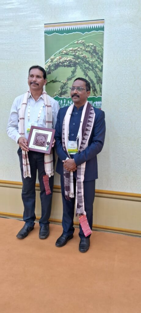 lରାୟଗଡ:-ତା.୦୯/୧୧- ରାୟଗଡା ଜିଲ୍ଲାରେ ମିଲେଟ ମିଶନ ଅଧୀନରେ ମାଣ୍ଡିଆ ଚାଷ କ୍ଷେତ୍ରରେ ଭଲ ପ୍ରଦର୍ଶନ ପାଇଁ ଆଜି ରାୟଗଡା ଜିଲ୍ଲା ପୁରସ୍କୃତ ହୋଇଛି l ଜିଲ୍ଲାରେ ମାଣ୍ଡିଆ ଚାଷ ପାଇଁ କୃଷି ବିଭାଗ ତରଫରୁ ଚାଷୀ ମାନଙ୍କୁ ପ୍ରତ୍ସାହିତ କରିବା, ଯନ୍ତ୍ରପାତି ଯୋଗାଇବା ସହିତ ଉତ୍ପଦାନ ବଢ଼ାଇବାରେ ସହାୟକ ହୋଇଥିବାରୁ ଆଜି ଆନ୍ତର୍ଜାତିକ ମିଲେଟ ସମ୍ମିଳନୀରେ ମାନ୍ୟବର ମୁଖ୍ୟମନ୍ତ୍ରୀ ଓଡିଶା ଶ୍ରୀଯୁକ୍ତ ନବୀନ ପଟ୍ଟନାୟକ ଏହି ପୁରସ୍କାର ପ୍ରଦାନ କରିଥିଲେ l ଏହି ପୁରସ୍କାରକୁ ରାୟଗଡା ଅତିରିକ୍ତ ଜିଲ୍ଲାପାଳ ଶ୍ରୀ ରାମେଶ୍ୱର ପ୍ରଧାନ ଏବଂ ମୁଖ୍ୟ ଜିଲ୍ଲା କୃଷିଅଧିକାରୀ ମନୋଜ କୁମାର ପ୍ରଧାନ ଗ୍ରହଣ କରିଥିଲେ l ଗତ ୨୦୨୧-୨୨ବର୍ଷରେ ୬୯୦୦ହେକ୍ଟର ଲକ୍ଷ୍ୟ ଧାର୍ଯ୍ୟରୁ ୬୪୩୩.୧୨ହେକ୍ଟର ହାସଲ କରିଥିଲା ଓ ହେକ୍ଟରକୁ ୨୫କ୍ୱିଣ୍ଟାଲ ଉତ୍ପଦାନ କରାଯାଇଥିଲା l ସେହିପରି ୨୦୨୨-୨୩ ବର୍ଷରେ ୮୪୪୦ହେକ୍ଟର ଲକ୍ଷ୍ୟ ଧାର୍ଯ୍ୟରୁ ୭୫୨୫.୧୦ହେକ୍ଟର କରାଯାଇଥିଲା ଏବଂ ହେକ୍ଟରକୁ ୨୭କ୍ୱିଣ୍ଟାଲ ମାଣ୍ଡିଆ ଉତ୍ପାଦନ କରାଯାଇଥିଲ l ଜିଲ୍ଲାରେ ଗତ ୨୦୨୧-୨୨ବର୍ଷରେ ୫୩୪୨୮.୯୬କ୍ୱିଣ୍ଟାଲ ମାଣ୍ଡିଆ ଆଦାୟ ହୋଇଥିଲା ବେଳେ ୨୦୨୨-୨୩ବର୍ଷରେ ୭୭୩୯୯.୫କ୍ୱିଣ୍ଟାଲ ମାଣ୍ଡିଆ ଆଦାୟ ହୋଇଥିଲା l