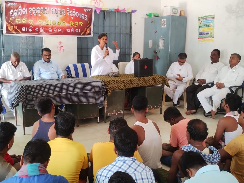 ଆସିକା ଉପ-କାରାଗାରରେ ଅଧ୍ୟକ୍ଷ ଦିଲ୍ଲୀପ କୁମାର ଜେନାଙ୍କ ସଂଯୋଜନା ରେ ଅନ୍ତେବାସୀଙ୍କ ପାଇଁ ରକ୍ଷାବନ୍ଧନ କାର୍ଯ୍ୟକ୍ରମ ଆୟୋଜିତ ହୋଇଯାଇଛି l ଏହି ଅବସରରେ ପ୍ରଜାପିତା ବ୍ରହ୍ମାକୁମାରୀ ଇଶ୍ବରୀୟ ବିଶ୍ଵ ବିଦ୍ୟାଳୟ ଶାନ୍ତି ଶକ୍ତି ଭଵନ ସଂଚାଳିକା ରାଜଯୋଗିନୀ ବ୍ରହ୍ମାକୁମାରୀ ପ୍ରଭାତୀ ଭଉଣୀ ଉପ-କାରାଗାରରେ ଅନ୍ତେବାସୀ ତଥା ସମସ୍ତ କର୍ମକର୍ତ୍ତାଙ୍କୁ ରକ୍ଷାବନ୍ଧନର ଆଧ୍ଯାତ୍ମିକ ସନ୍ଦେଶ ପ୍ରଦାନ କରିଥିଲେ l ମନୋବୃତ୍ତି କୁ ପରିବର୍ତ୍ତନ କରି ସର୍ବଦା ସକାରାତ୍ମକ ଚିନ୍ତନରେ ରହି ସମସ୍ତ ପରିସ୍ଥିତିରେ ଆଗକୁ ବଢିବା ପାଇଁ ବ୍ରହ୍ମାକୁମାରୀ ଇଶ୍ବରୀୟ ବିଶ୍ବବିଦ୍ୟାଳୟର ମାର୍ଗ ଦର୍ଶନ ସମସ୍ତଙ୍କୁ ଅନୁପ୍ରାଣିତ କରୁଥିବା ପ୍ରକାଶ କରିଥିଲେ ସୁପରିଟେଣ୍ଡେଣ୍ଟ ଦିଲ୍ଲୀପ କୁମାର ଜେନା l ପରମାତ୍ମାଙ୍କ ରକ୍ଷା ସୂତ୍ର ଧାରଣ କରି ଶିବପିତା ଙ୍କ ସ୍ମୃତିରେ ରହି ଜୀବନକୁ ପରିବର୍ତ୍ତନ କରିବା ପାଇଁ ସମସ୍ତ ଅନ୍ତେବାସୀ ସଂକଳ୍ପ କରିଥିଲେ l କାର୍ଯ୍ୟକ୍ରମର ପରିଚାଳନାରେ ସବ-ଆସିଷ୍ଟାଣ୍ଟ ଜେଲର କୃଷ୍ଣମୂର୍ତ୍ତି ପାତ୍ର, ସବ-ଆସିଷ୍ଟାଣ୍ଟ ଜେଲର ହରିକୃଷ୍ନ ବେହେରା, ଫାର୍ମାସିଷ୍ଟ ଉମାକାନ୍ତ ସାହୁ ସାହୁ,ୱାର୍ଡର ସୀମାଞ୍ଚଳ ବେହେରା,ହରି ହର ବେହେରା, ସୁକାନ୍ତ ନାୟକ, ରମେଶ ଚନ୍ଦ୍ର ନାୟକ, ବିରଞ୍ଚି ନାରାୟଣ ସାହୁ,