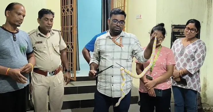 ଭଦ୍ରକ ୧୮।୦୪ : ବିରଳ ଆଲବିନୋ ରଣା ଉଦ୍ଧାର । ଭଦ୍ରକ ଜିଲ୍ଲାର ବନ୍ତ ବ୍ଲକର ଛୁଆଳ ସିଂହ ଅଞ୍ଚଳରୁ ଆଜି ଏକ ହଳଦିଆ ଧଳା ରଙ୍ଗର ସାପ ସ୍ଥାନୀୟ ଲୋକ ମାନେ ଧରି ଏକ ପ୍ଲାଷ୍ଟିକ ଡବାରେ ରଖିଥିଲେ । ସ୍ନେକ୍ ହେଲ୍ପ ଲାଇନର ସାଧାରଣ ସମ୍ପାଦକ ଶୁଭେନ୍ଦୁ ମଲ୍ଲିକଙ୍କୁ ଫୋନ କରି ଲୋକ ମାନେ ସାପଟିକୁ ଉଦ୍ଧାର କରିବା ପାଇଁ ଅନୁରୋଧ କରିଥିଲେ। ଶୁଭେନ୍ଦୁ ଭଦ୍ରକ ଡିଭିଜନର ଏସିଏଫ ସୁମିତ୍ ମହାନ୍ତିଙ୍କୁ ସାପର ଫୋଟୋ ପଠେଇ ନିଜ ଷ୍ଟାଫ୍ ପଠେଇବା ପାଇଁ ଅନୁରୋଧ କରିଥିଲେ ।ଏସିଏଫଙ୍କ ନିର୍ଦ୍ଦେଶରେ ସାପଟିକୁ ଭଦ୍ରକ ରେଞ୍ଜ ଅଫିସକୁ ଅଣା ଯାଇଥିଲା। ମୁହଁରେ ଖଣ୍ଡିଆ ଥିବାରୁ ସାପର ସ୍ୱାସ୍ଥ୍ୟ ଭଲ ମନ୍ଦ ଦେଖିବା ପାଇଁ ଭଦ୍ରକ ଡିଭିଜନର ACF ସୁମିତ ମହାନ୍ତି ସ୍ନେକ ହେଲ୍ପ ଲାଇନକୁ ଅନୁରୋଧ କରିଛନ୍ତି । ଅଧିକ ଚିକିତ୍ସା ଆବଶ୍ୟକତା ଥିବାରୁ ସାପକୁ ନନ୍ଦନକାନନ ପଠେଇବା ପାଇଁ ସ୍ନେକ ହେଲ୍ପ ଲାଇନ ତରଫରୁ ପରାମର୍ଶ ଦିଆଯାଇଛି ।
