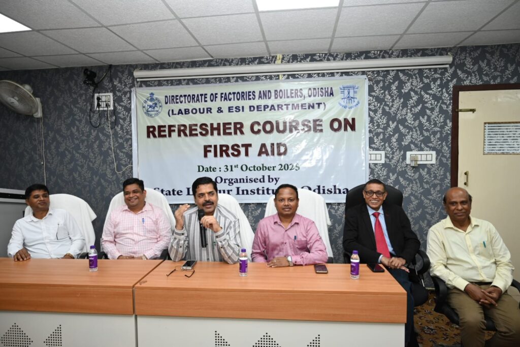 ତା. ୩୧. ୧୦. ୨୦୨୫ ରିଖ ଭୁବନେଶ୍ବର ରାଜ୍ୟରେ କାରଖାନା ମାନଙ୍କରେ ଉଭୟ ସୁରକ୍ଷିତ କାର୍ଯ୍ଯସ୍ଥଳୀ ଏବଂ ଶ୍ରମିକ ସୁରକ୍ଷାକୁ ସରକାର ପ୍ରାଥମିକତା ଦେଉଥିବାରୁ ଶ୍ରମ ଓ କର୍ମଚାରୀ ରାଜ୍ୟ ବୀମା ବିଭାଗର ମଞ୍ଜୁରୀ କ୍ରମେ କାରଖାନା ଏବଂ ବାଷ୍ପୀତ୍ର ନିର୍ଦ୍ଦେଶାଳୟ ପକ୍ଷରୁ ଭିନ୍ନ ଭିନ୍ନ ସୁରକ୍ଷା ସମ୍ପର୍କିତ ପ୍ରସଙ୍ଗ ଉପରେ ତାଲିମ କାର୍ଯ୍ୟକ୍ରମ ମାନ ଅନୁଷ୍ଠିତ ହୋଇଆସୁଅଛି। ଏହି କ୍ରମରେ ରାଜ୍ୟରେ କାରଖାନା ମାନଙ୍କରେ ସୁରକ୍ଷିତ ଚଳନ, ରକ୍ଷଣାବେକ୍ଷଣ ଏବଂ ମରାମତିକୁ ଦୃଷ୍ଟିରେ ରଖାଯାଇ ଗତ ତା . ୩୧.୧୦. ୨୦୨୫ ରିଖ ଦିନ ରାଜ୍ୟ ଶ୍ରମ ପ୍ରତିଷ୍ଠାନ ଆନୁକୂଲ୍ୟରେ ପ୍ରତିଷ୍ଠାନ ସମ୍ମିଳନୀ କକ୍ଷରେ “ରିଫ୍ରେଶର୍ କୋର୍ସ ଇନ୍ ଫାର୍ଷ୍ଟ ଏଇଡ୍” ସମ୍ବନ୍ଧରେ ସୁରକ୍ଷା ଏବଂ ଗୁଣବତ୍ତା” ଶୀର୍ଷକ ବିଷୟ ଉପରେ ଏକ ରାଜ୍ଯସ୍ତରୀୟ ତାଲିମ କର୍ମଶାଳା ଅନୁଷ୍ଠିତ ହୋଇଥିଲା । ପୂର୍ବାହ୍ନରେ କାରଖାନା ଏବଂ ବାଷ୍ପୀତ୍ର ନିର୍ଦ୍ଦେଶାଳୟର ଉପନିର୍ଦ୍ଦେଶକ (ସୁରକ୍ଷା), ଡଃ ମଳୟ କୁମାର ପ୍ରଧାନ ଉଦବୋଧନ ଦେଇଥିଲେ। କାରଖାନା ମାନଙ୍କରେ ସ୍ୱାସ୍ଥ୍ୟକୁ ଅଗ୍ରାଧିକାର ଦିଆଯିବା ଉଚିତ ବୋଲି ମତବ୍ୟକ୍ତ କରିବା ସହିତ କାରଖାନା ମାଲିକ, ସୁରକ୍ଷା ଅଧିକାରୀ ଓ ସ୍ୱାସ୍ଥ୍ୟ ଅଧିକାରୀମାନଙ୍କର ଏଥିନିମନ୍ତେ ଗୁରୁ ଦାୟିତ୍ୱ ରହିଛି ବୋଲି ପ୍ରକାଶ କରିଥିଲେ। ଡ଼ା. ପ୍ରଧାନ କହିଥିଲେ, “ସୁରକ୍ଷା ବିଫଳ ହେଲେ, ପ୍ରାଥମିକ ଚିକିତ୍ସା ଆରମ୍ଭହୁଏ। ପ୍ରାଥମିକ ଚିକିତ୍ସା ହେଉଛି ଜୀବନ ଓ ମୃତ୍ୟୁ ମଧ୍ୟରେ ସେତୁ।