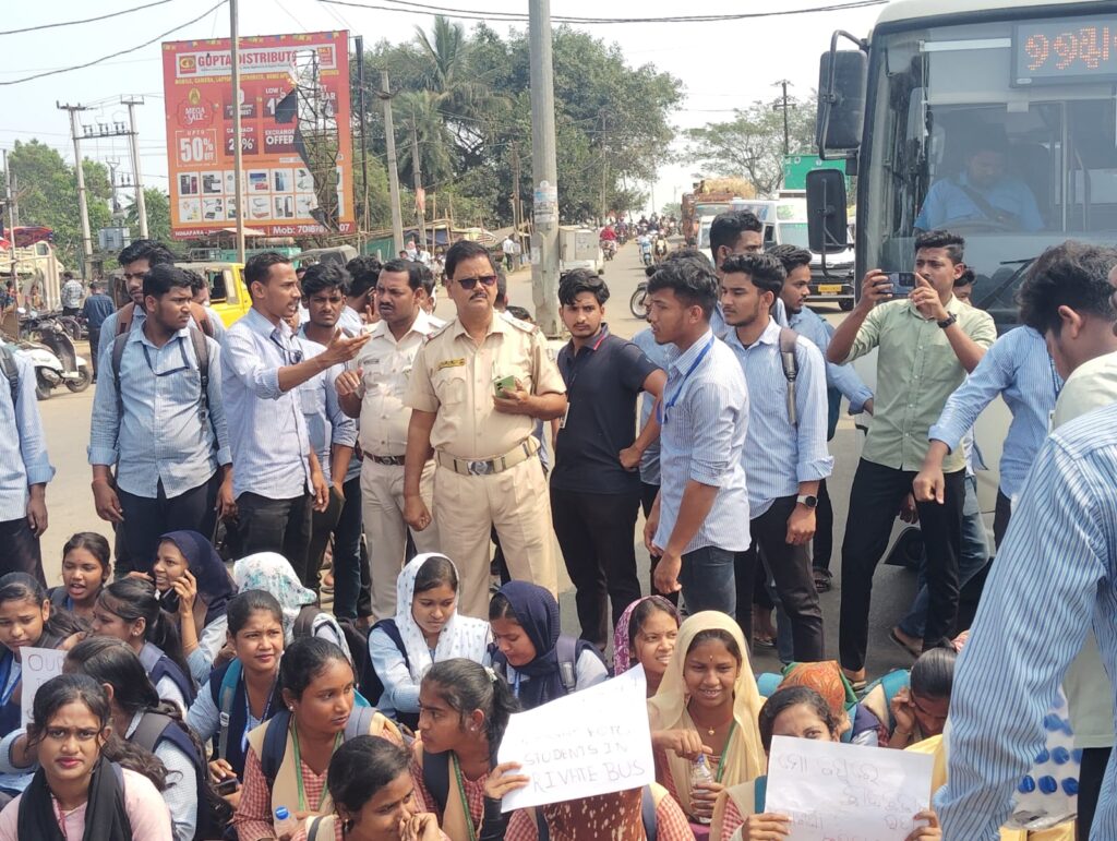 ସରକାରୀ ବେସରକାରୀ ବସରେ ଛାତ୍ର ଛାତ୍ରୀଙ୍କ ଯାତାୟାତ ଭଡା ରିହାତି ଦାବିରେ ରାସ୍ତାରୋକ