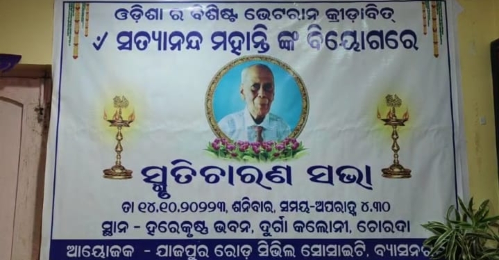 ଓଡ଼ିଶାର ବିଶିଷ୍ଟ ଭେଟରାନ କ୍ରୀଡାବିତ୍ ଇଂ. ସତ୍ୟାନନ୍ଦ ମହାନ୍ତି ଙ୍କ ବିୟୋଗରେ ଏକ ସ୍ମୃତିଚାରଣ ସଭା ଯାଜପୁର ରୋଡ ସିଭିଲ ସୋସାଇଟି ତରଫରୁ ସ୍ଥାନୀୟ ଚୋରଦା, ଦୁର୍ଗା କଲୋନୀ ସ୍ଥିତ ହରେକୃଷ୍ଣ ଭବନ ଠାରେ ଅନୁଷ୍ଠିତ ହୋଇ ଯାଇଅଛି l ଆଇନଜୀବୀ ବିବେକାନନ୍ଦ ମହାନ୍ତି ଙ୍କ ଆହୁତ ସ୍ମୃତି ସଭାରେ ବରିଷ୍ଠ ନାଗରିକ ମଞ୍ଚର ସମ୍ପାଦକ ଚନ୍ଦ୍ରମଣି ସାମଲ ସଭାପତିତ୍ବ କରି ଆନନ୍ଦପୁର ରେ ଜନ୍ମିତ ଓ ଭୁବନେଶ୍ବର ନିବାସୀ ସ୍ୱର୍ଗତ ମହାନ୍ତି ଙ୍କ ଜୀବନ ରେ ବହୁବିଧ ପ୍ରତିଭା ଉପରେ ଆଲୋକ ପାତ କରିଥିଲେ l ସ୍ୱର୍ଗତ ମହାନ୍ତି ସମସ୍ତ ଛାତ୍ରଛାତ୍ରୀ, ଯୁବବର୍ଗ, ବୟସ୍କ, ବରିଷ୍ଠ ମାନଙ୍କ ପାଇଁ ଆଦର୍ଶ ଓ ପ୍ରେରଣା ହୋଇ ଦୀର୍ଘ ଆଠାନବେ ବର୍ଷ ଜୀବନରେ ଶେଷ ପର୍ଯ୍ୟନ୍ତ ଚଳଚଞ୍ଚଳ ଥିଲେ ଆଉ ରହିବେ ବୋଲି ବିଶିଷ୍ଟ ଶ୍ରମିକ ନେତା ବିଦ୍ୟାଧର ମହନ୍ତି ବୈଠକ ରେ ମତ ପ୍ରକାଶ କରିଥିଲେ l ତେବେ ଏହି ସ୍ମୃତି ସଭାରେ ଜିଲ୍ଲା ଆଥେଲେଟିକ ସଂଘର ସମ୍ପାଦକ, ଭେଟରାନ୍ କ୍ରୀଡାବିତ୍, ଅବସର ପ୍ରାପ୍ତ କର୍ମଚାରୀ, ଚଣ୍ଡି କ୍ଲବ ର ସମ୍ପାଦକ, ଆଦର୍ଶ ଯୋଗ କେନ୍ଦ୍ରର ଗୁରୁଜୀ, କୋରାଇ ସଂଗ୍ରାମ ସମିତି ର ସମ୍ପାଦକ, ପୂର୍ବତନ ବାୟୁସେନା ଅଧିକାରୀ, ଟ୍ୟାକ୍ସ ବାର ଆସୋସିଏସନ ର ପୁର୍ବତନ ସଭାପତି ଙ୍କ ସମେତ ବୋହୁ ବୁଦ୍ଧିଜୀବୀ ଯୋଗ ଦେଇଥିଲେ l